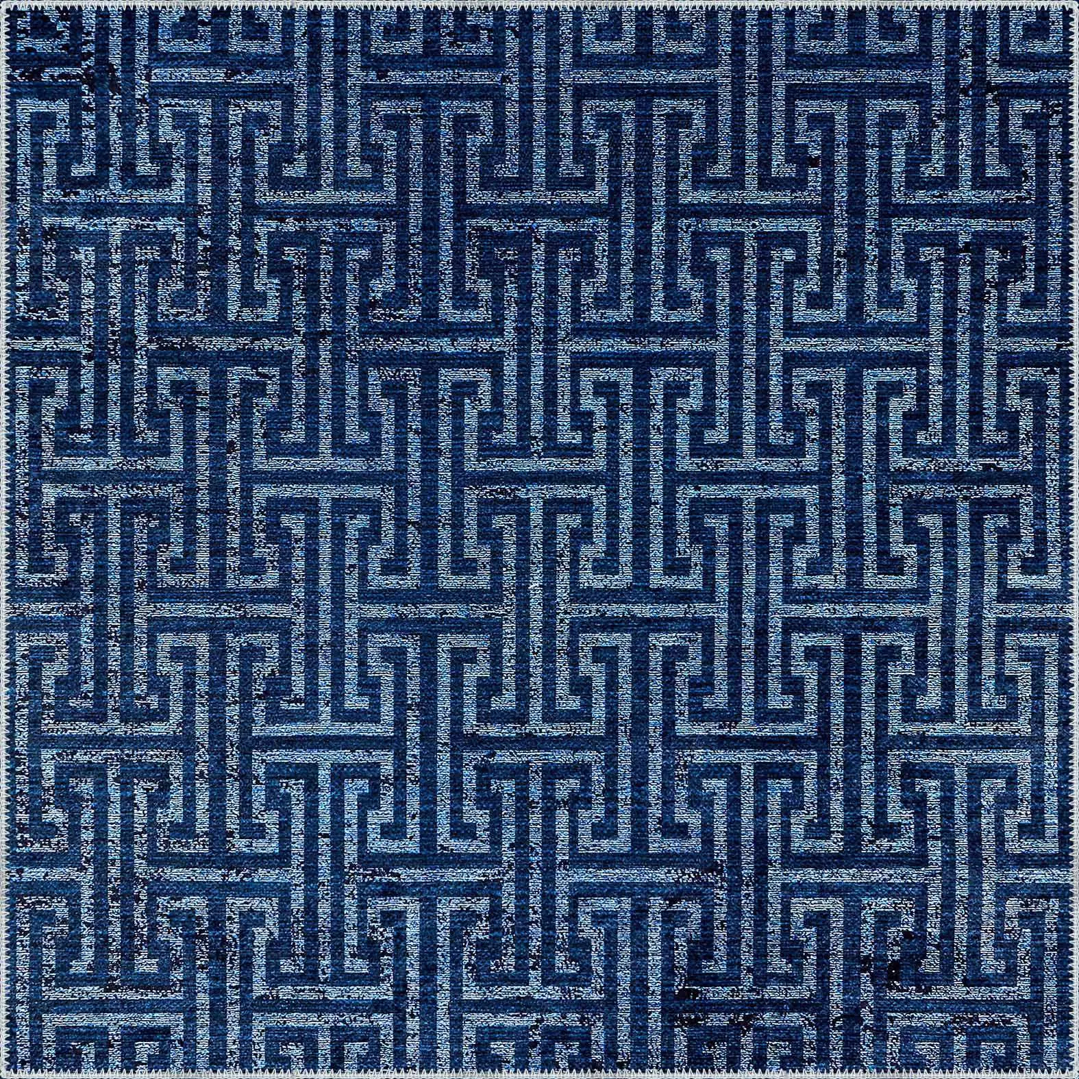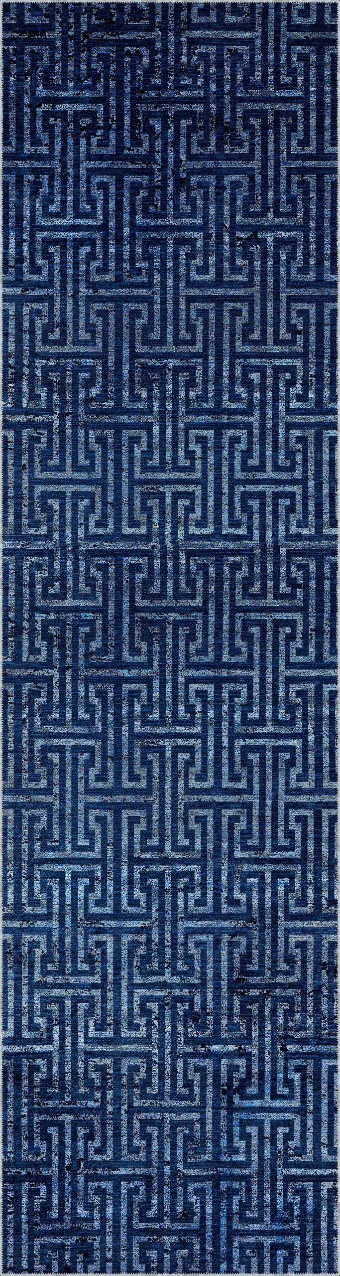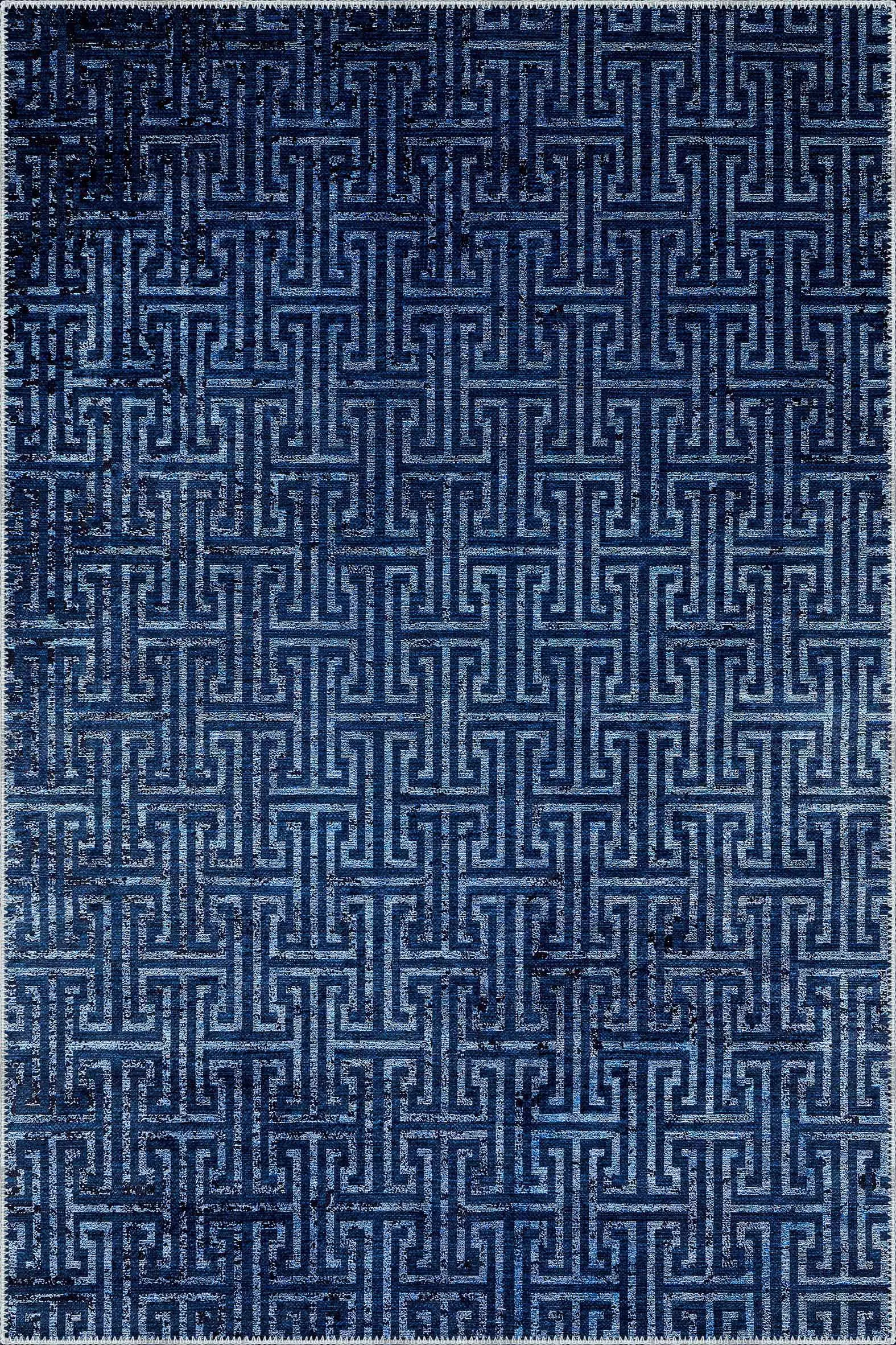 Ajmer Modern Lacivert Polyester ve Pamuklu Kaydırmaz Tabanlı Yıkanabilir Dijital Baskı Halısı