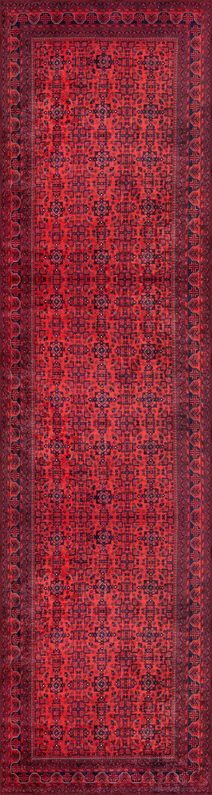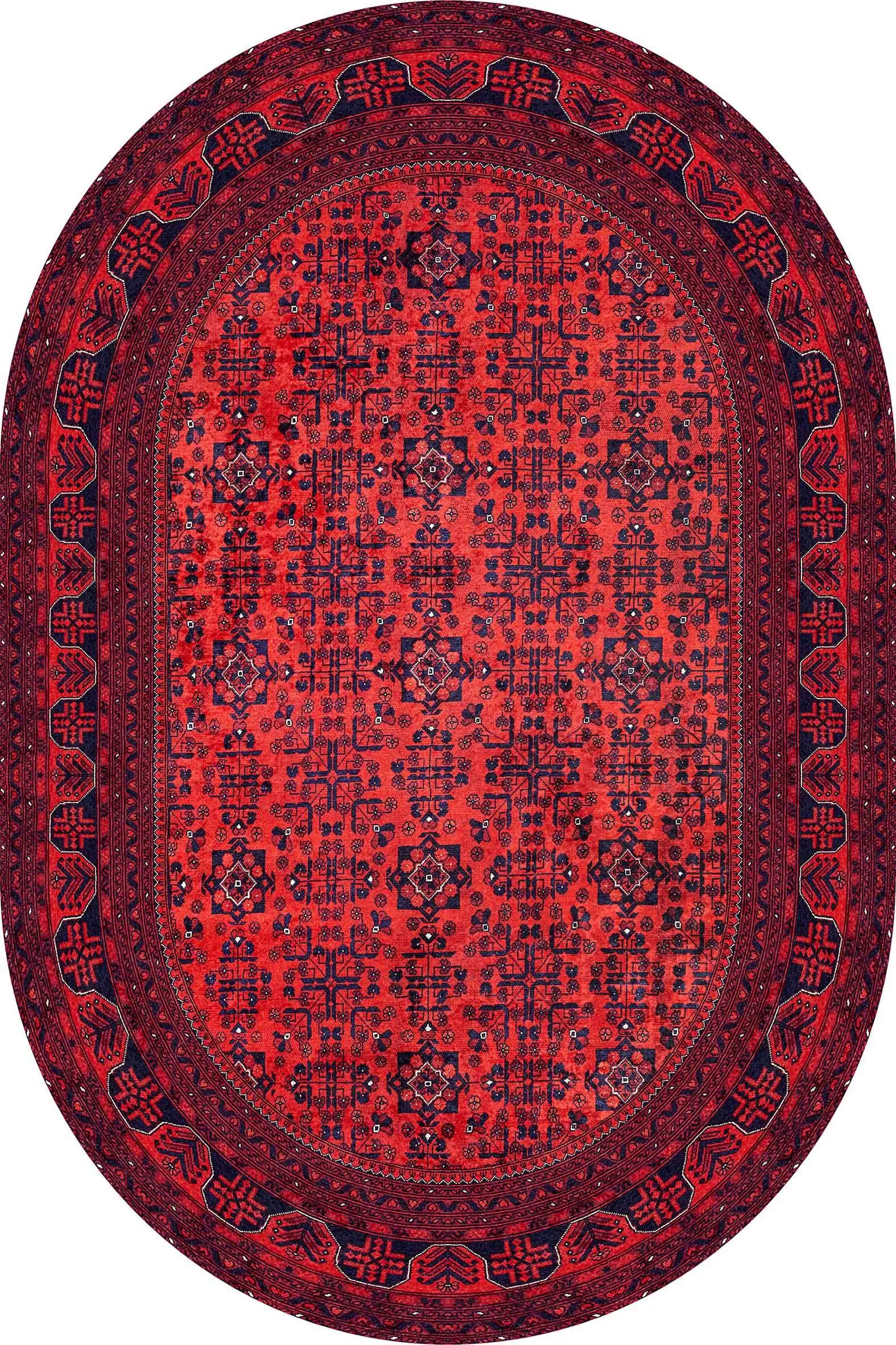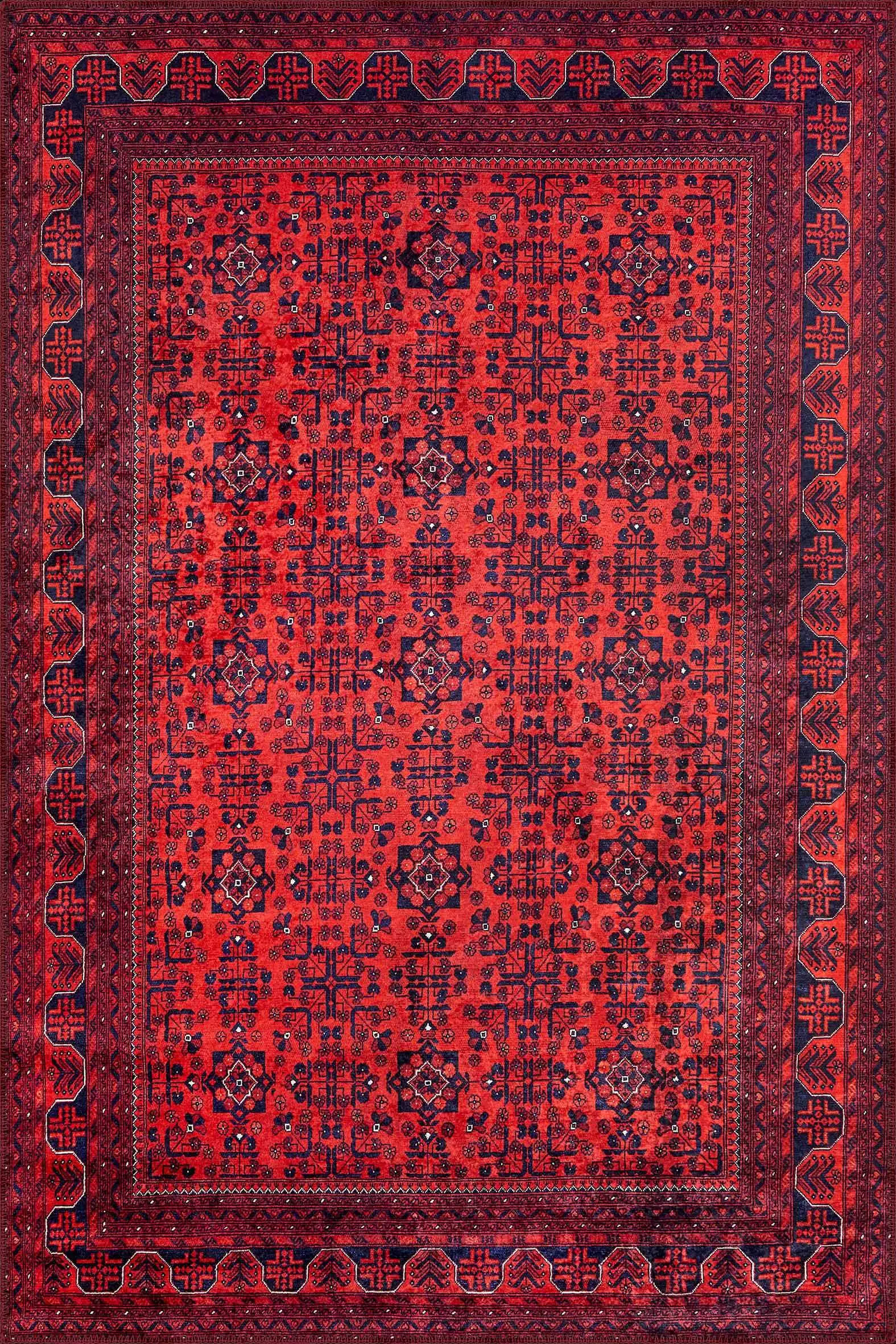 Alveste Çerçeveli Kırmızı Polyester ve Pamuklu Kaydırmaz Taban Yıkanabilir Dijital Baskı Halısı
