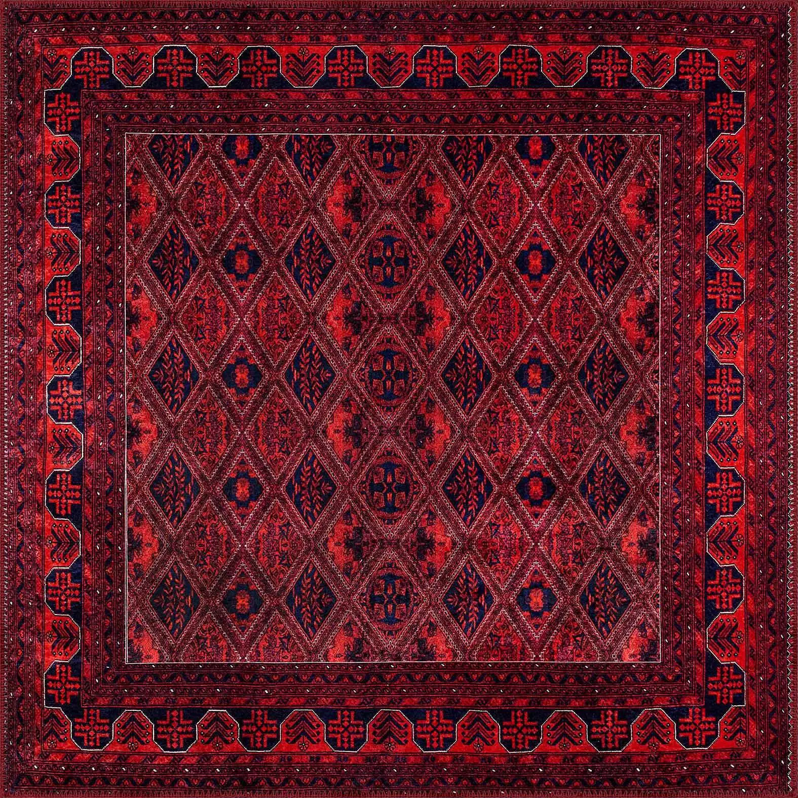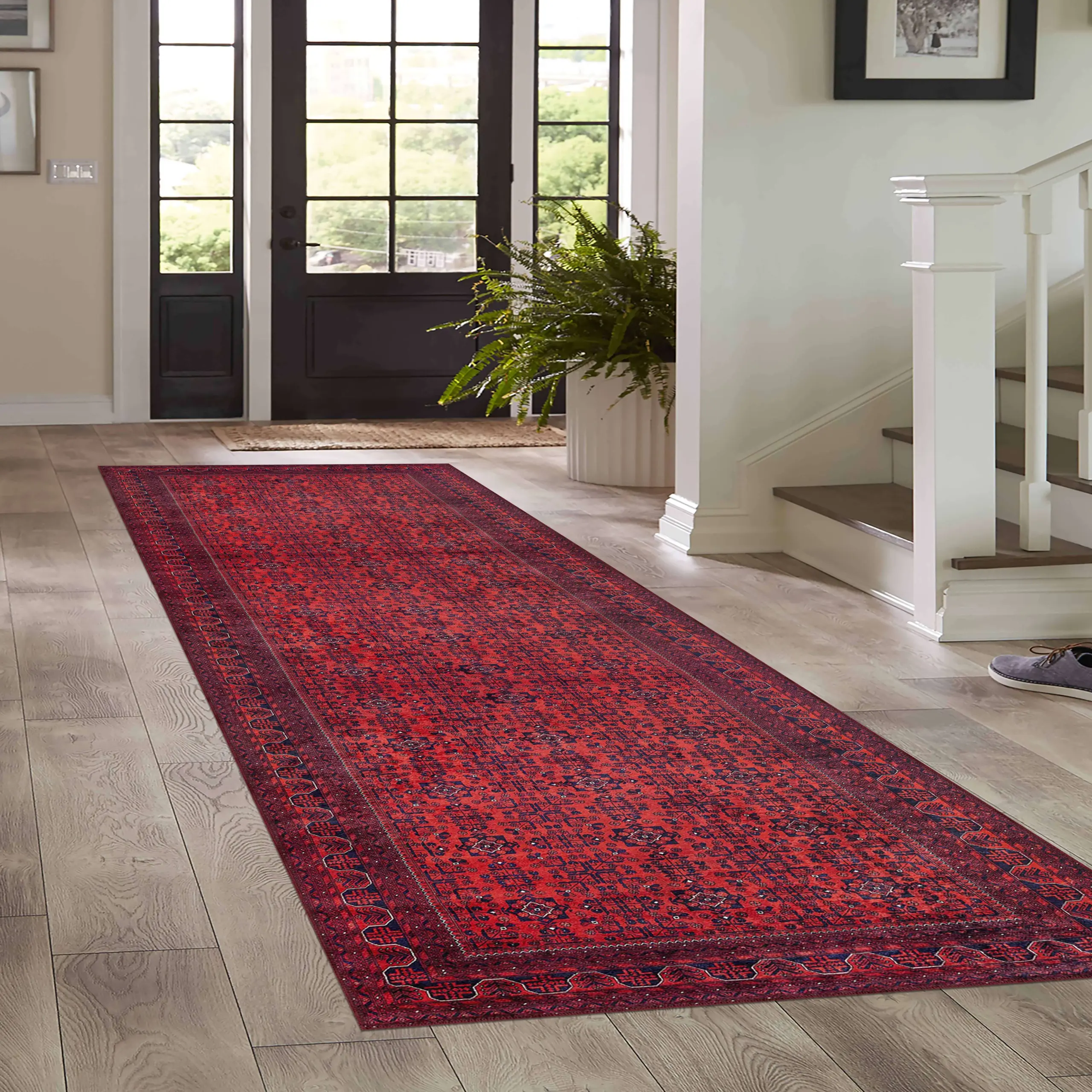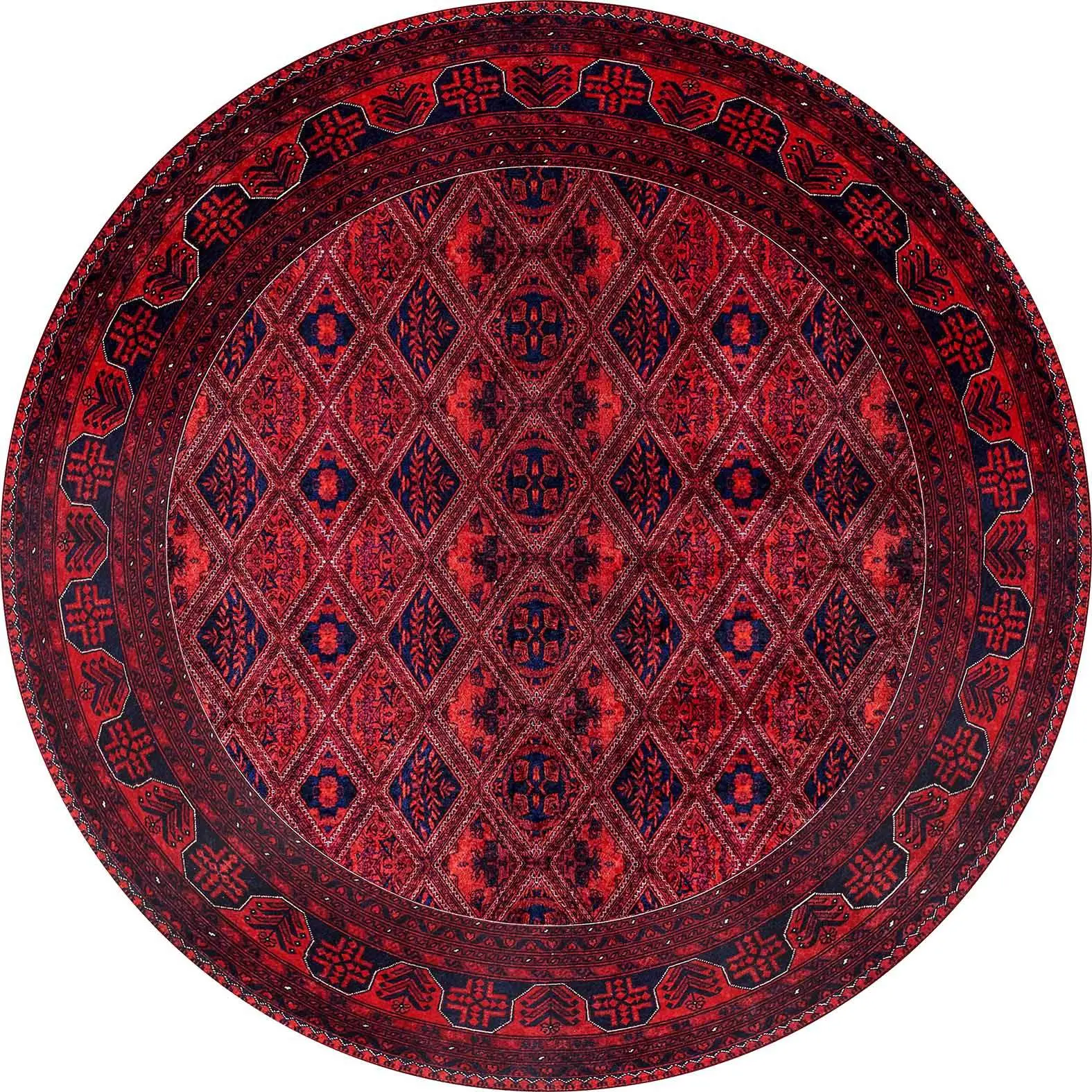 Alveste Çerçeveli Kırmızı Polyester ve Pamuklu Kaydırmaz Taban Yıkanabilir Dijital Baskı Halısı