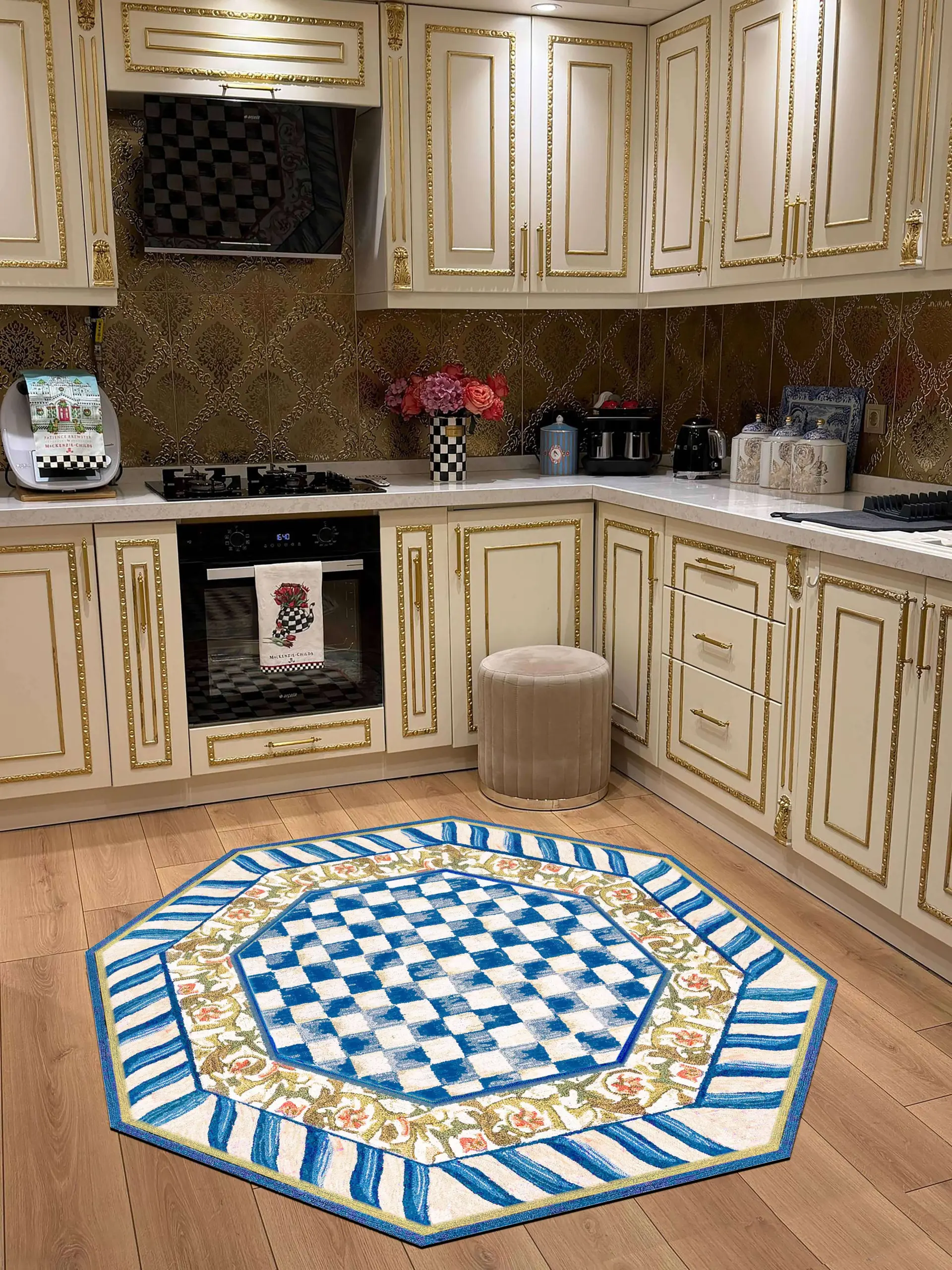 Aren Mutfak 04 Modern Çerçeveli Mavi Polyester Kaydırmaz Tabanlı Yıkanabilir Dijital Baskı Mutfak Halısı