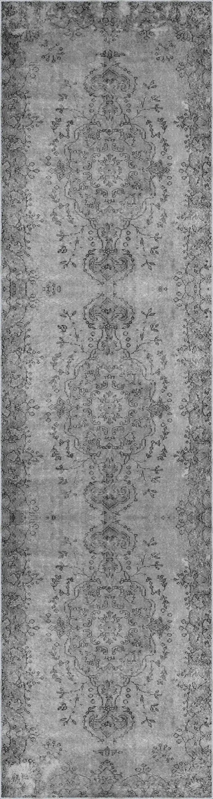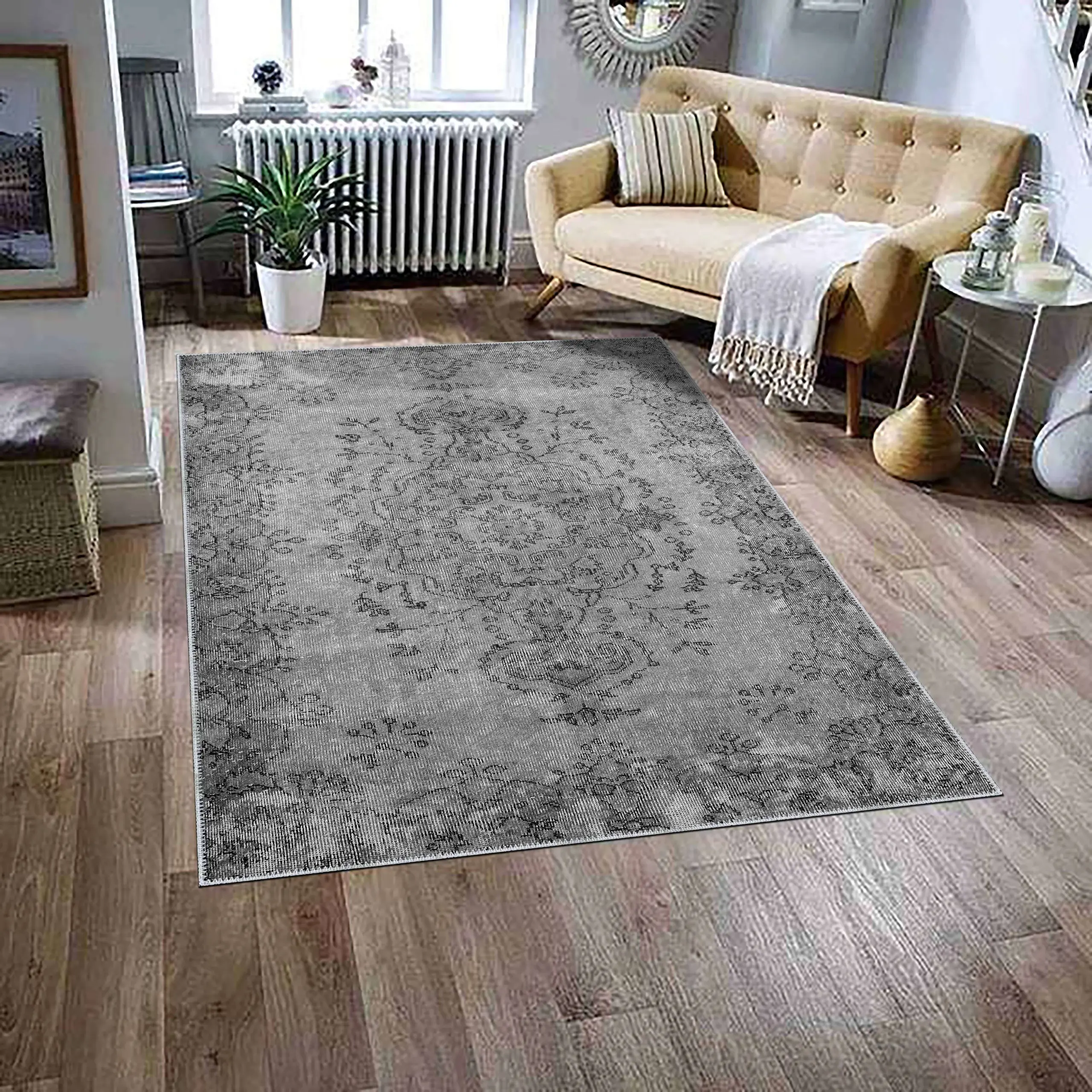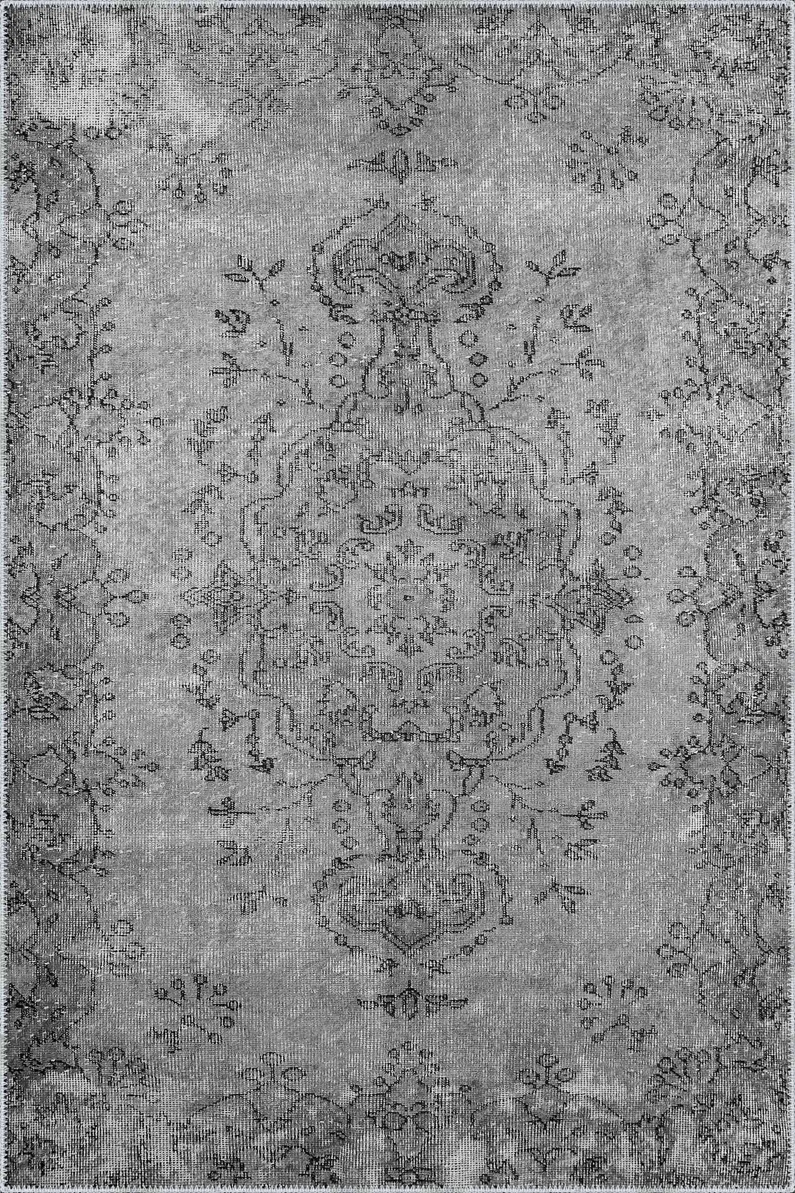 Bago Klasik Göbekli Gri Polyester ve Pamuklu Kaydırmaz Tabanlı Yıkanabilir Dijital Baskı Halısı