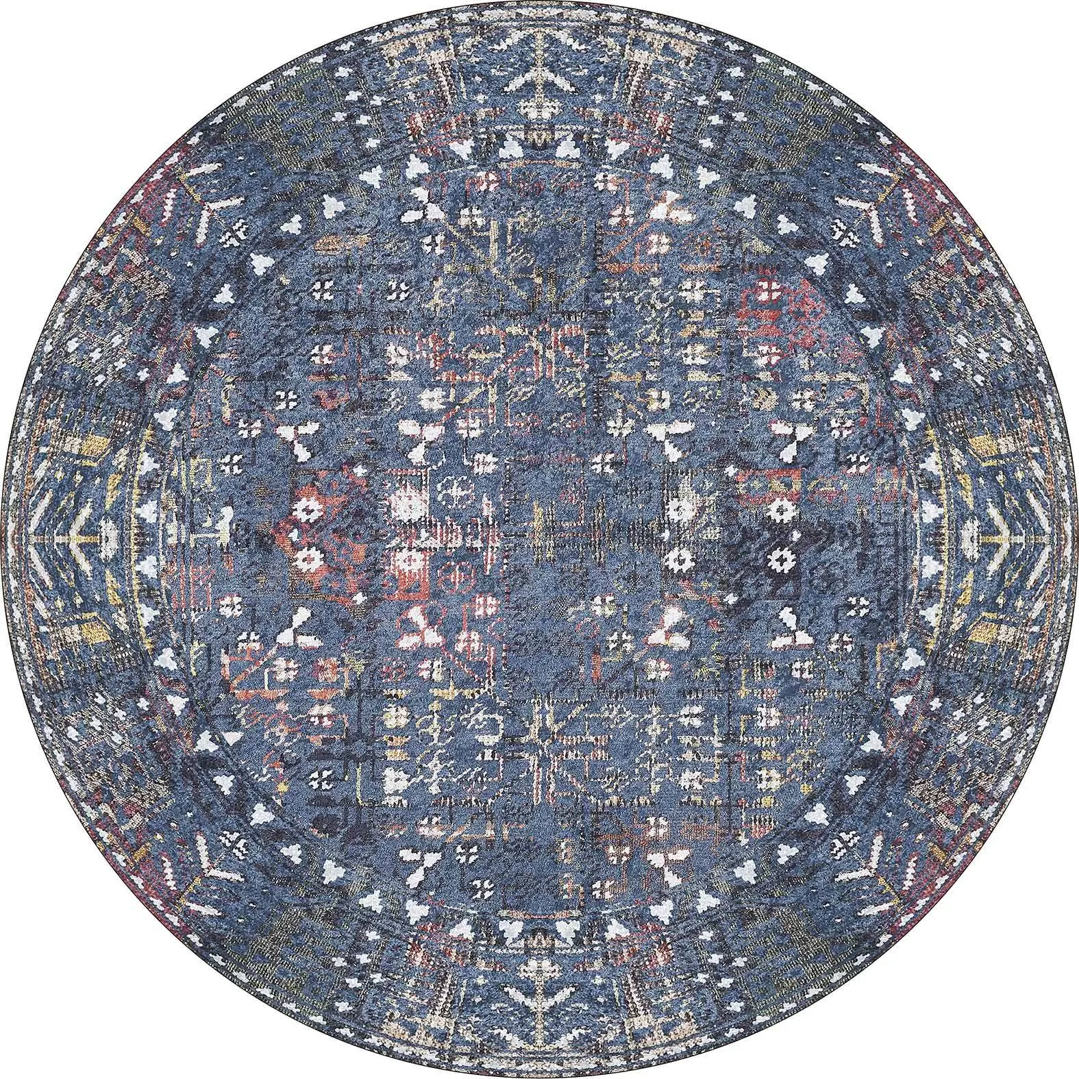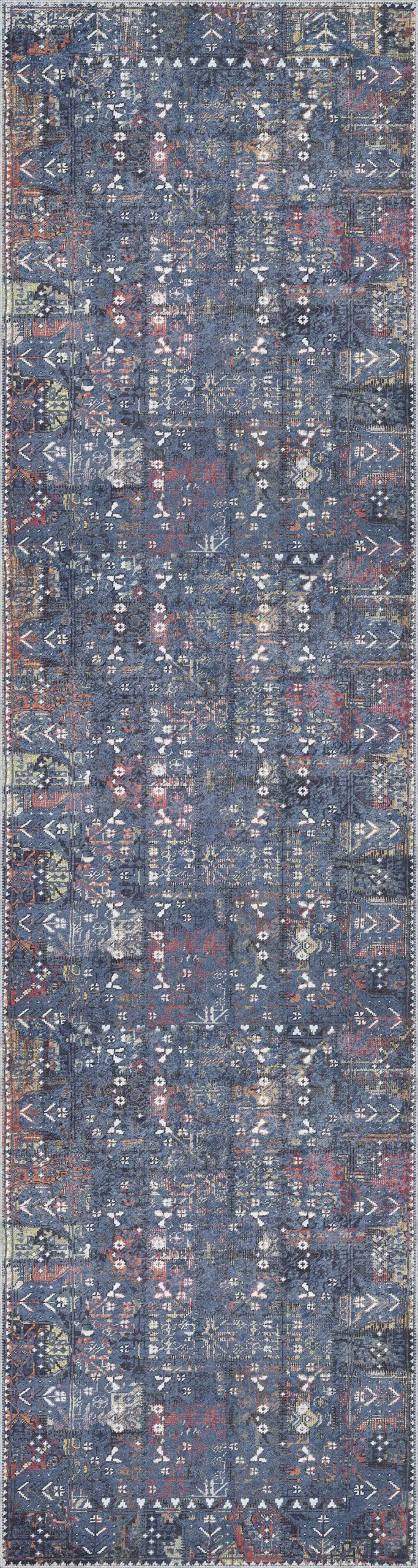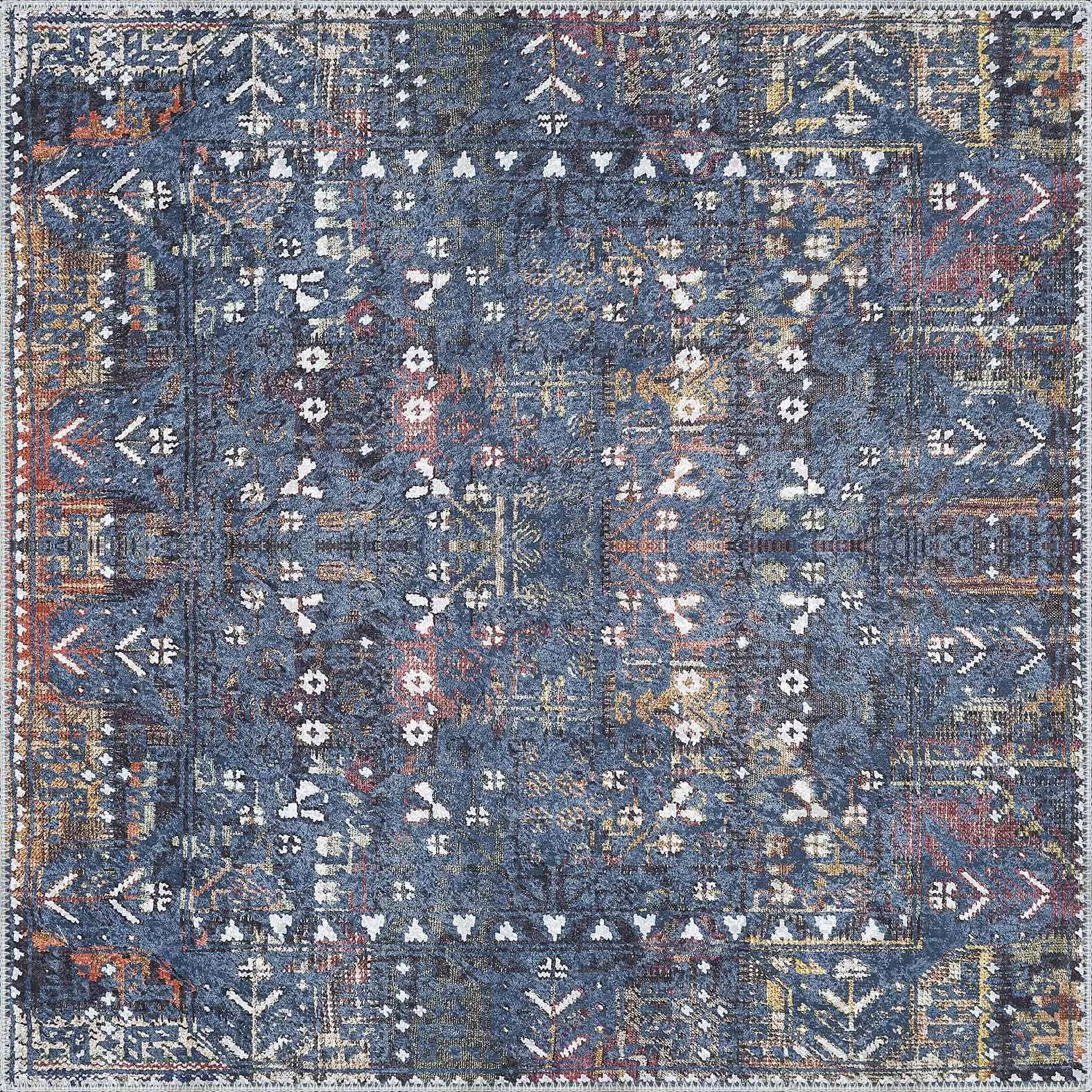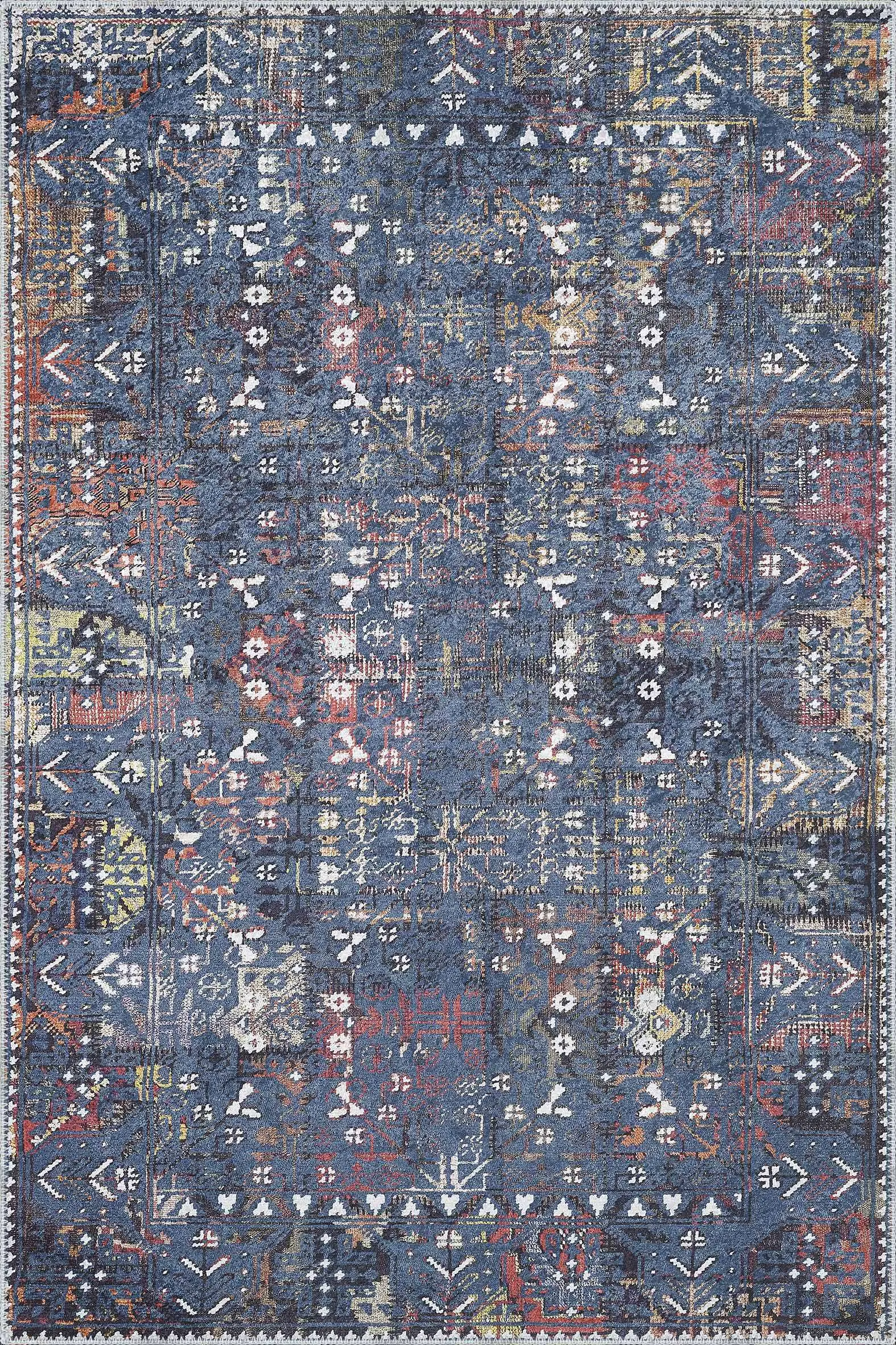 Drev Modern Mavi Polyester ve Pamuklu Kaydırmaz Tabanlı Yıkanabilir Dijital Baskı Halısı