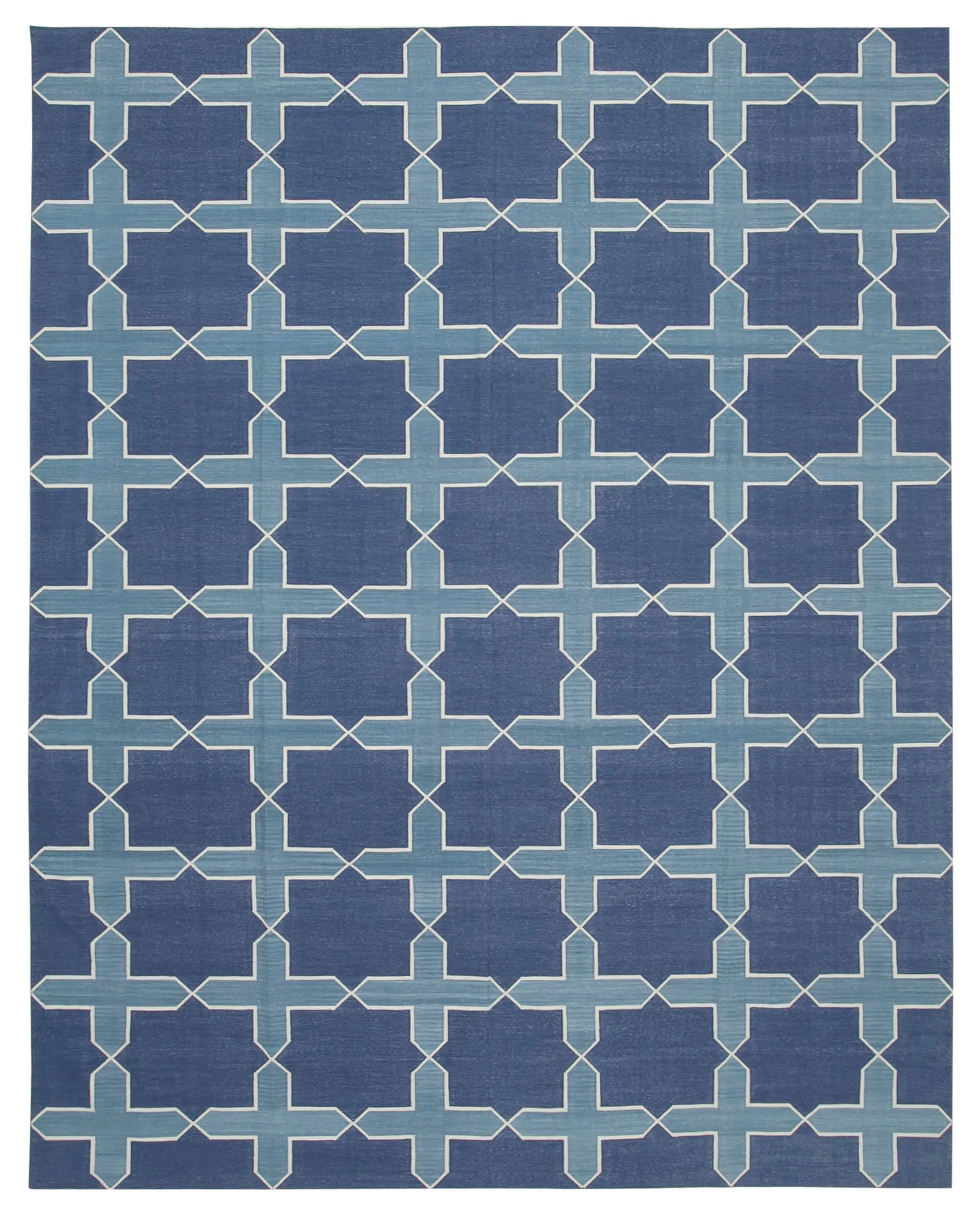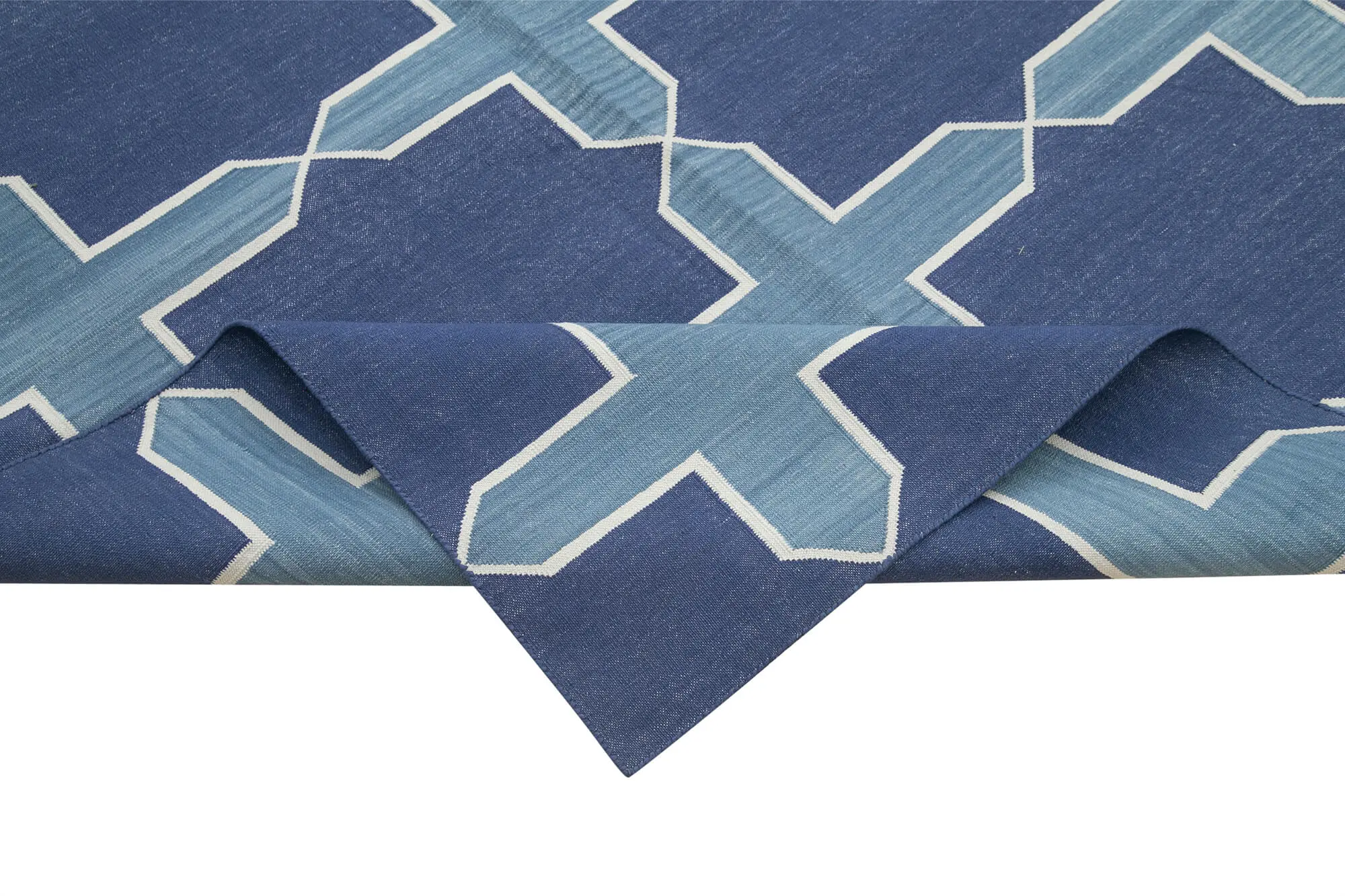 Duri Modern Mavi Pamuk Üstü Yün El Dokuma Kilim-280×358