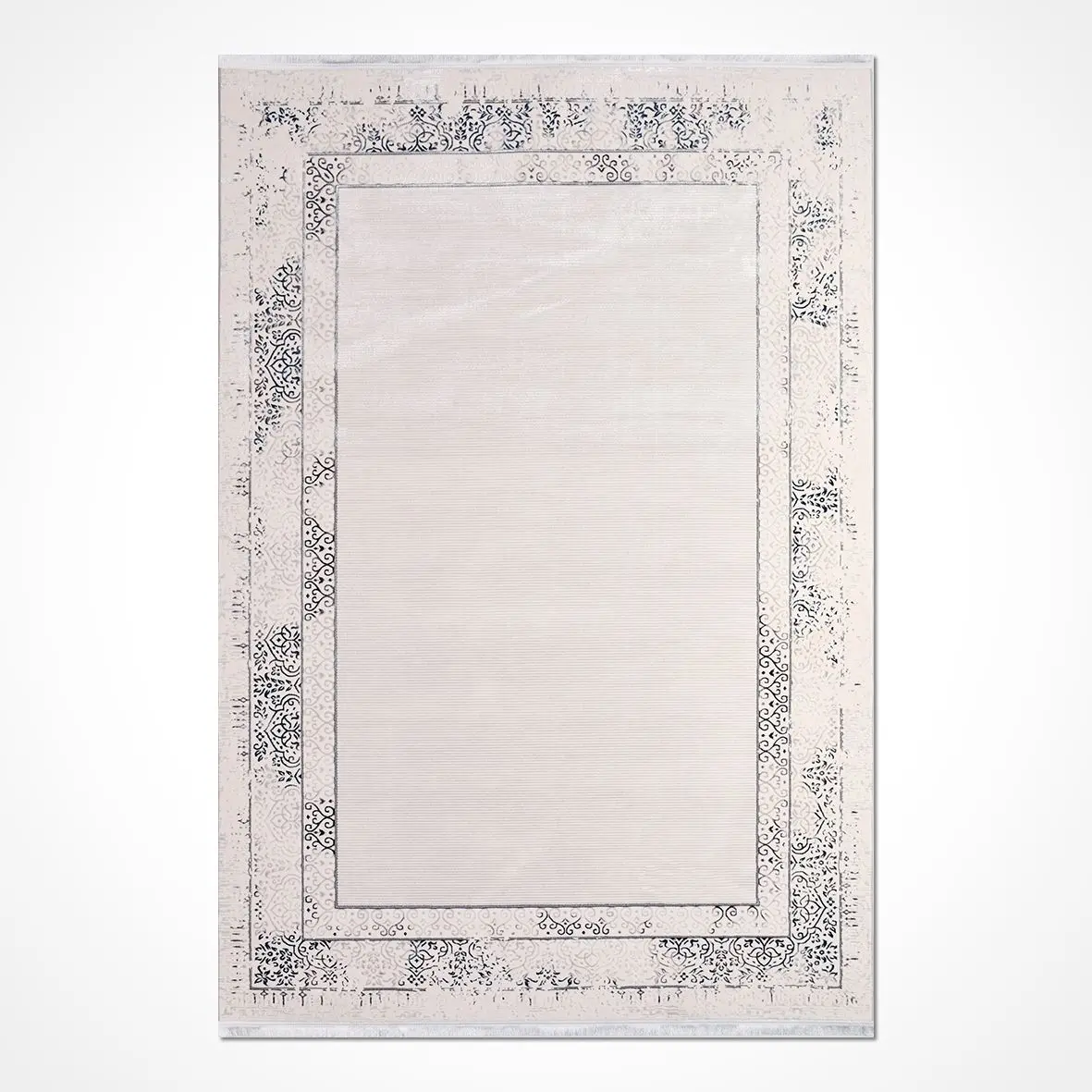 Engum Çerçeveli Krem Polyester Kaydırmaz Tabanlı Makine Halısı