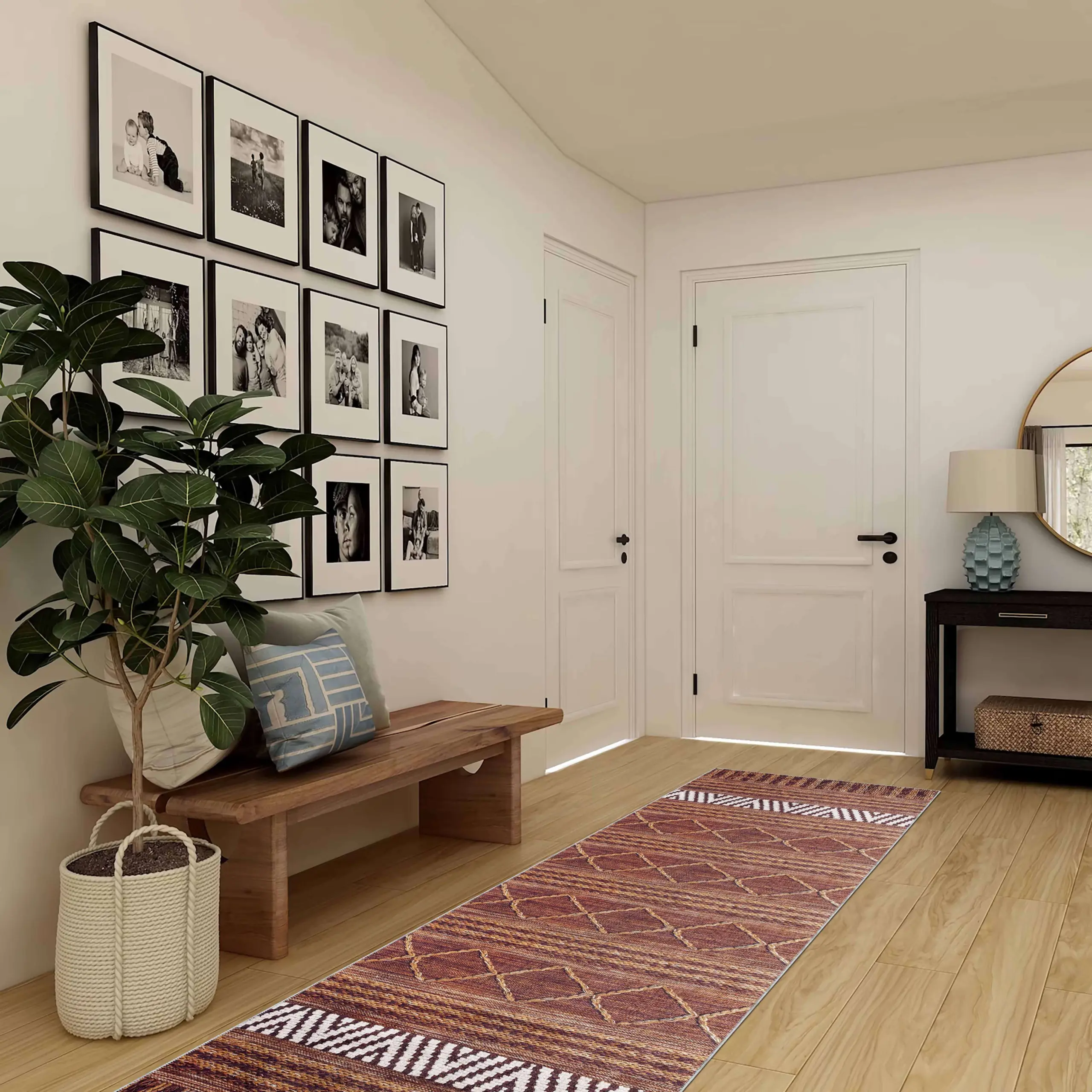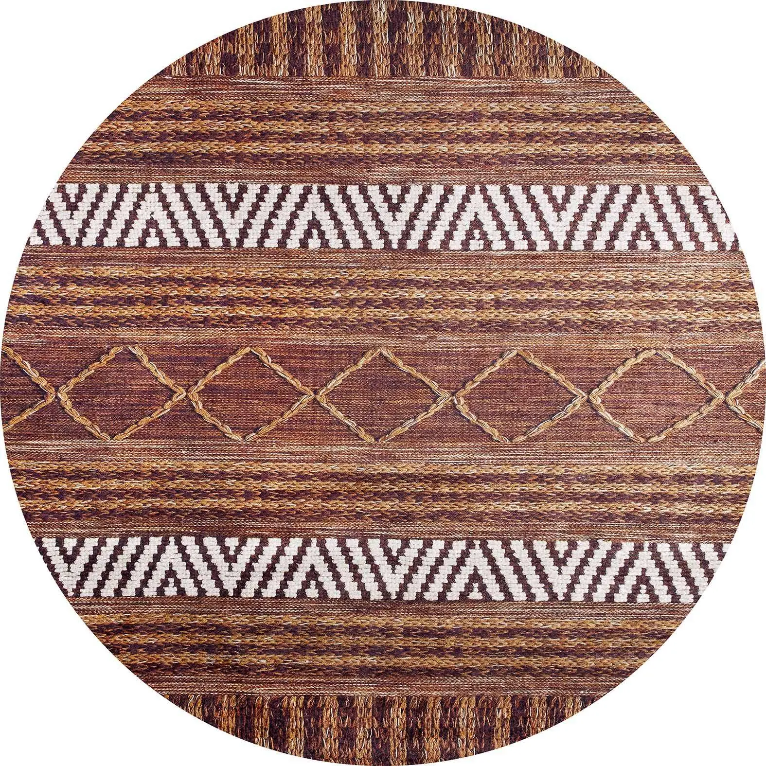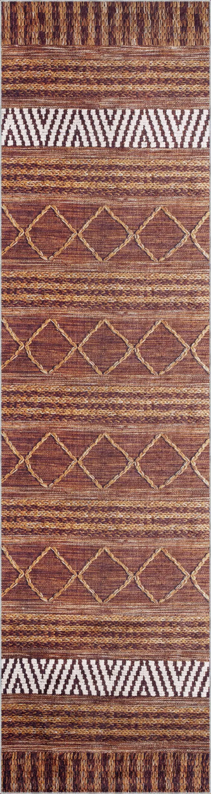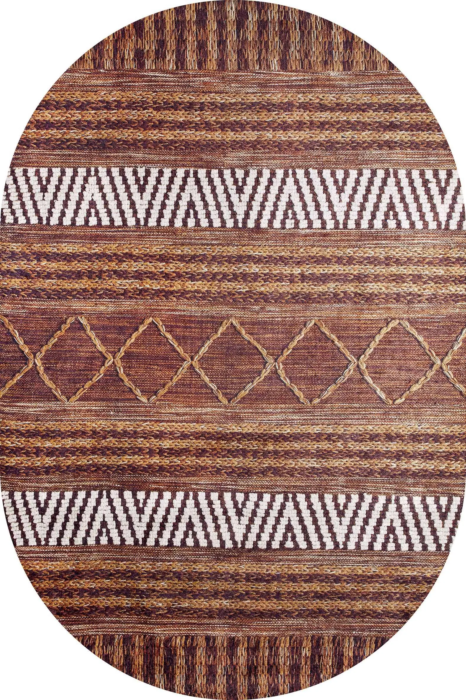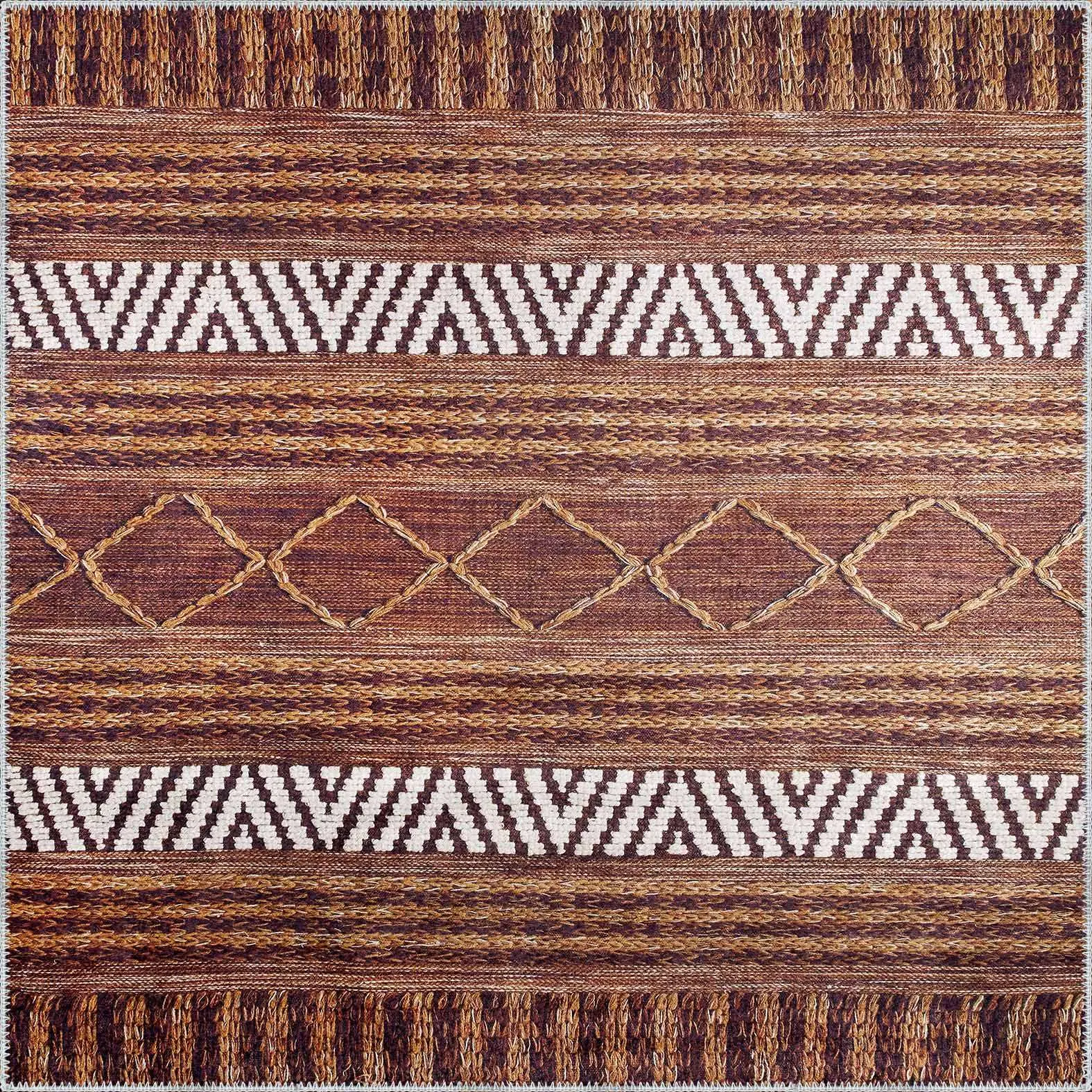 Gojra Geometrik Kahverengi Polyester ve Pamuklu Kaydırmaz Tabanlı Yıkanabilir Dijital Baskı Halısı
