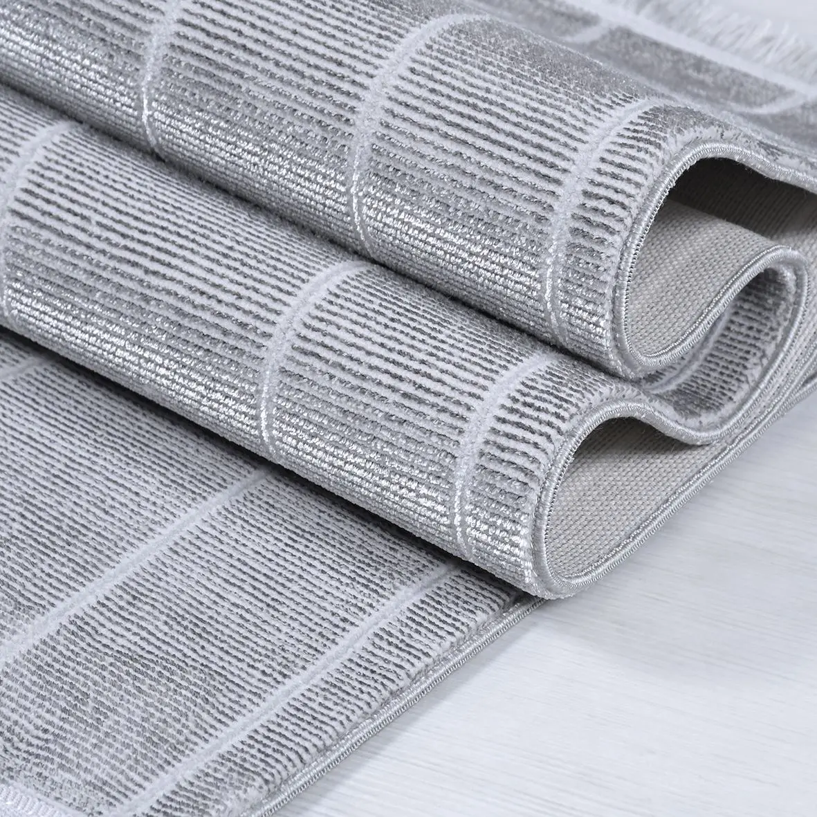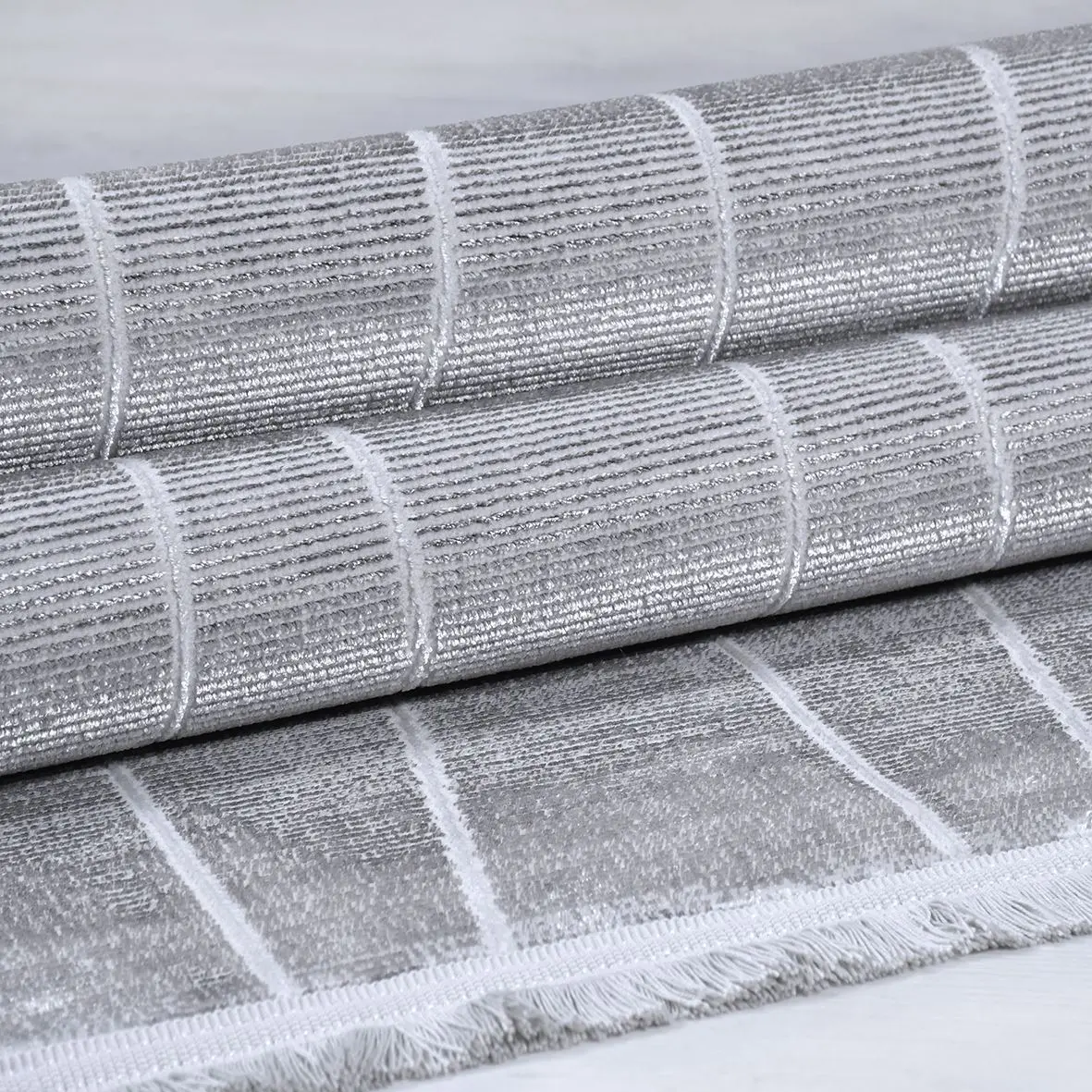 Hald Modern Gri Polyester Kaydırmaz Tabanlı Makine Halısı