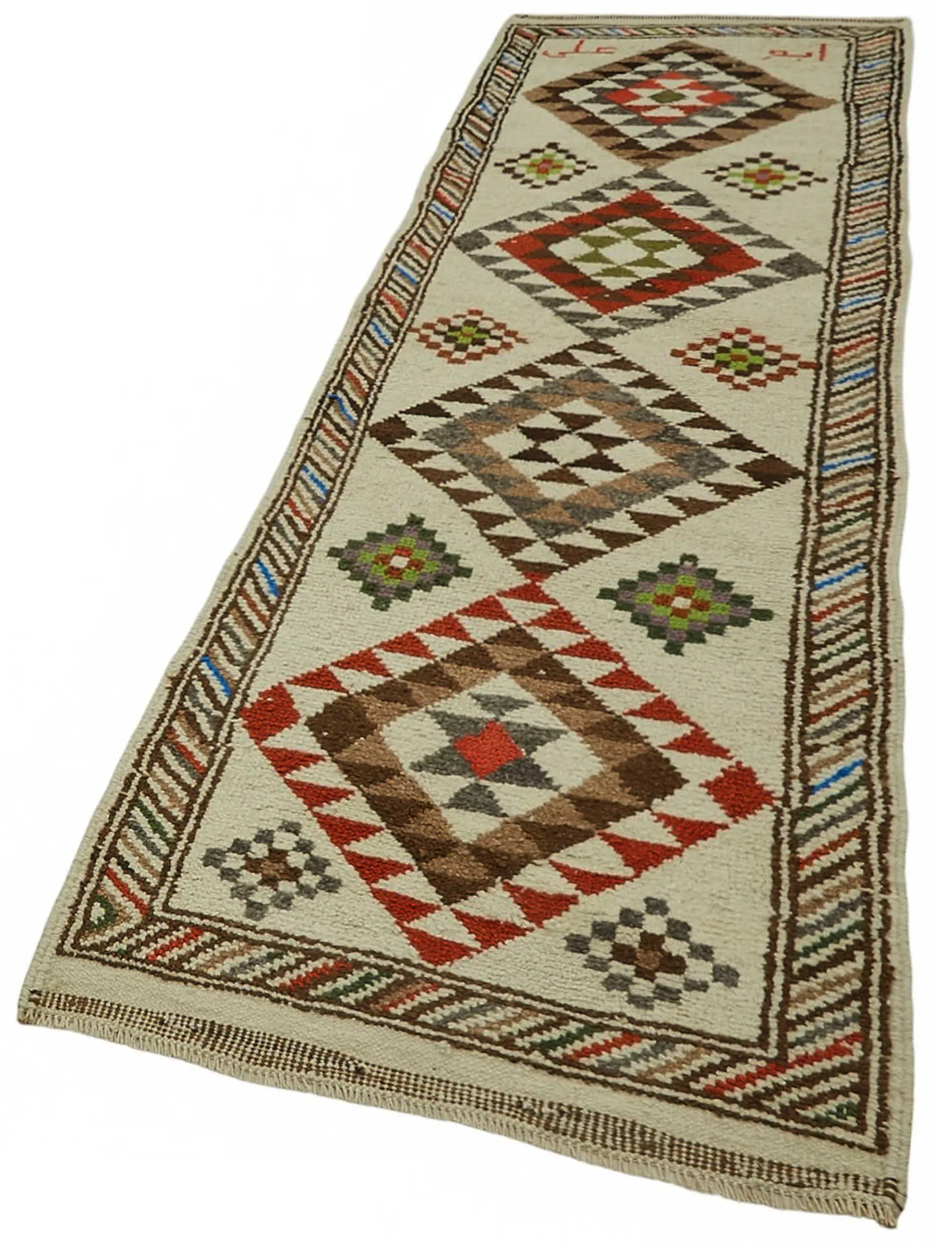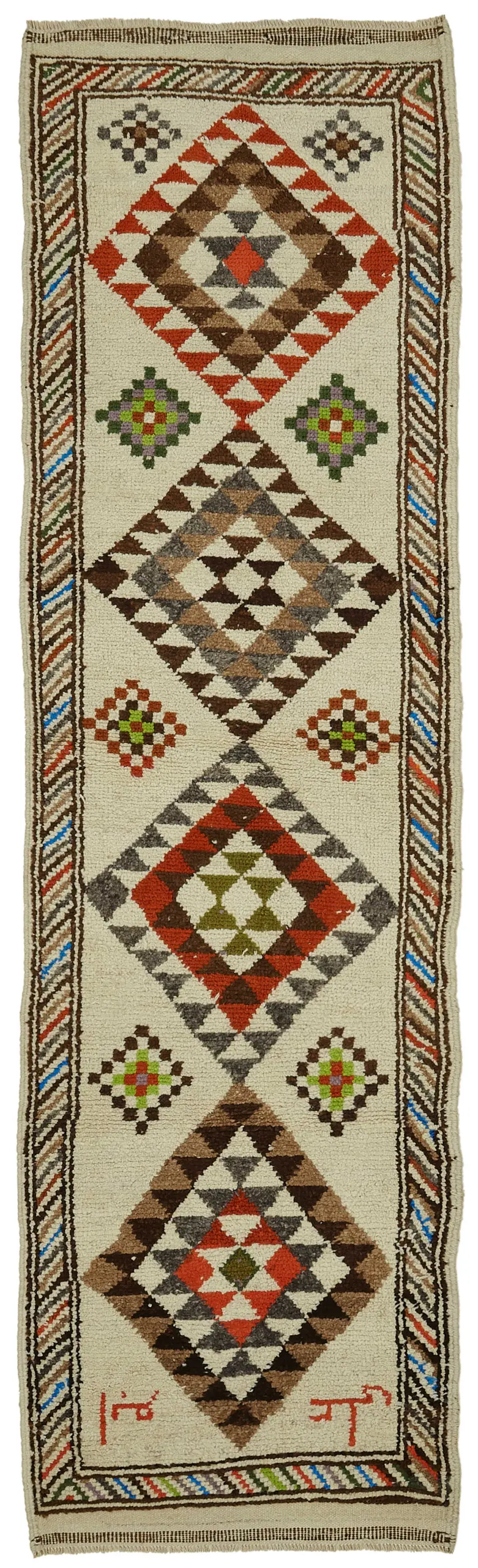 Herki Eskitme Bej Pamuk Üzerine Yün El Dokuma Halı-096×330
