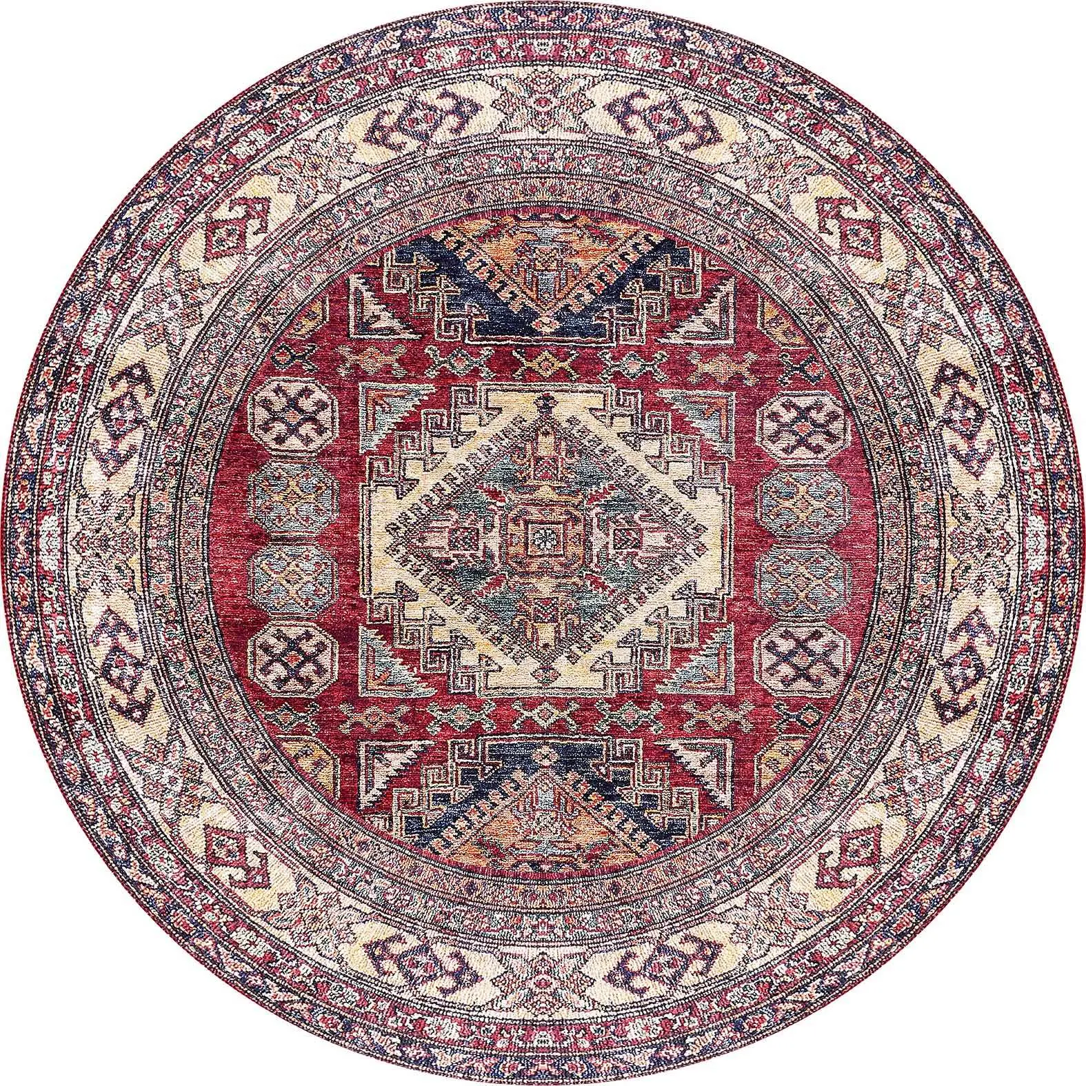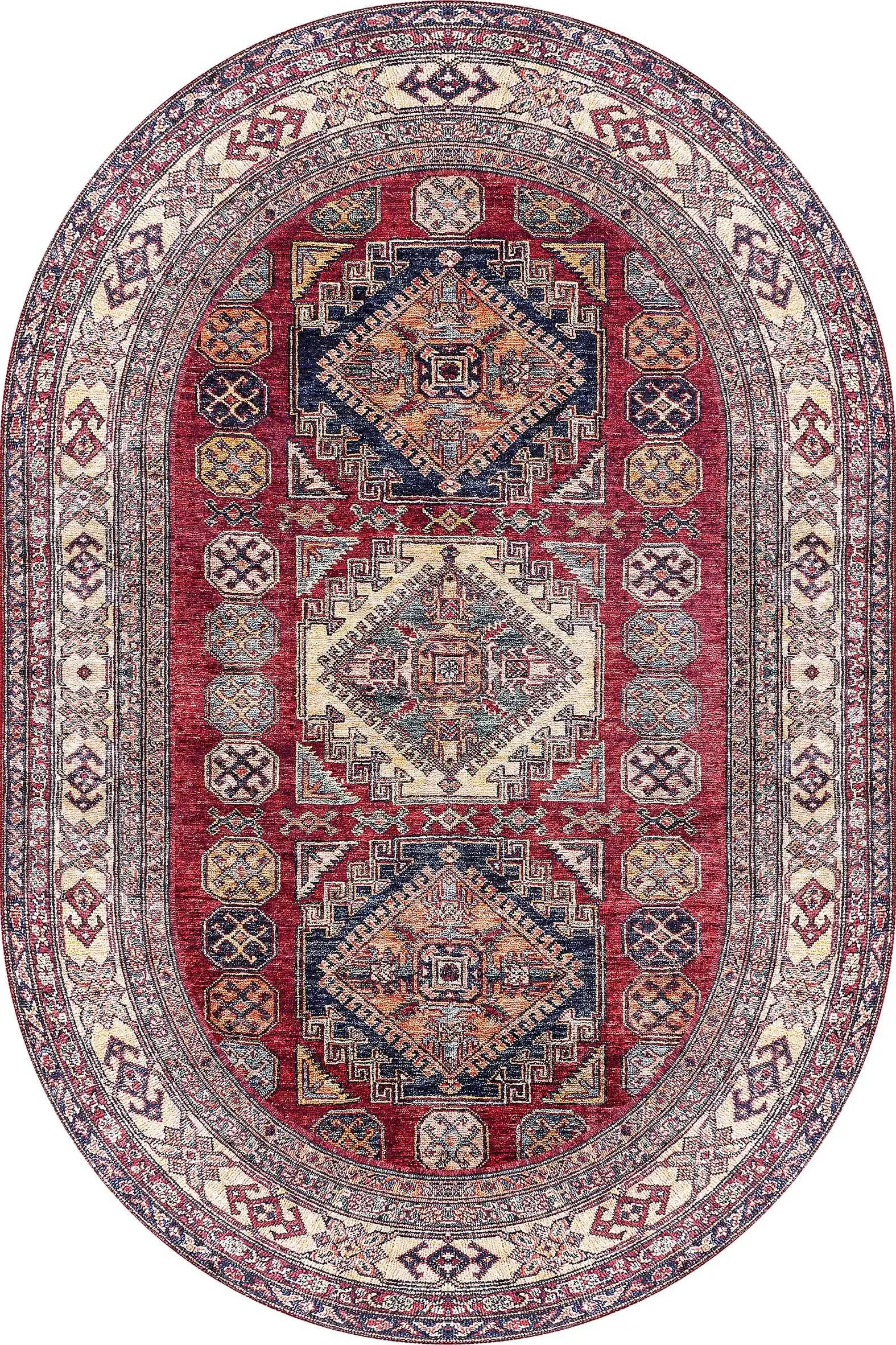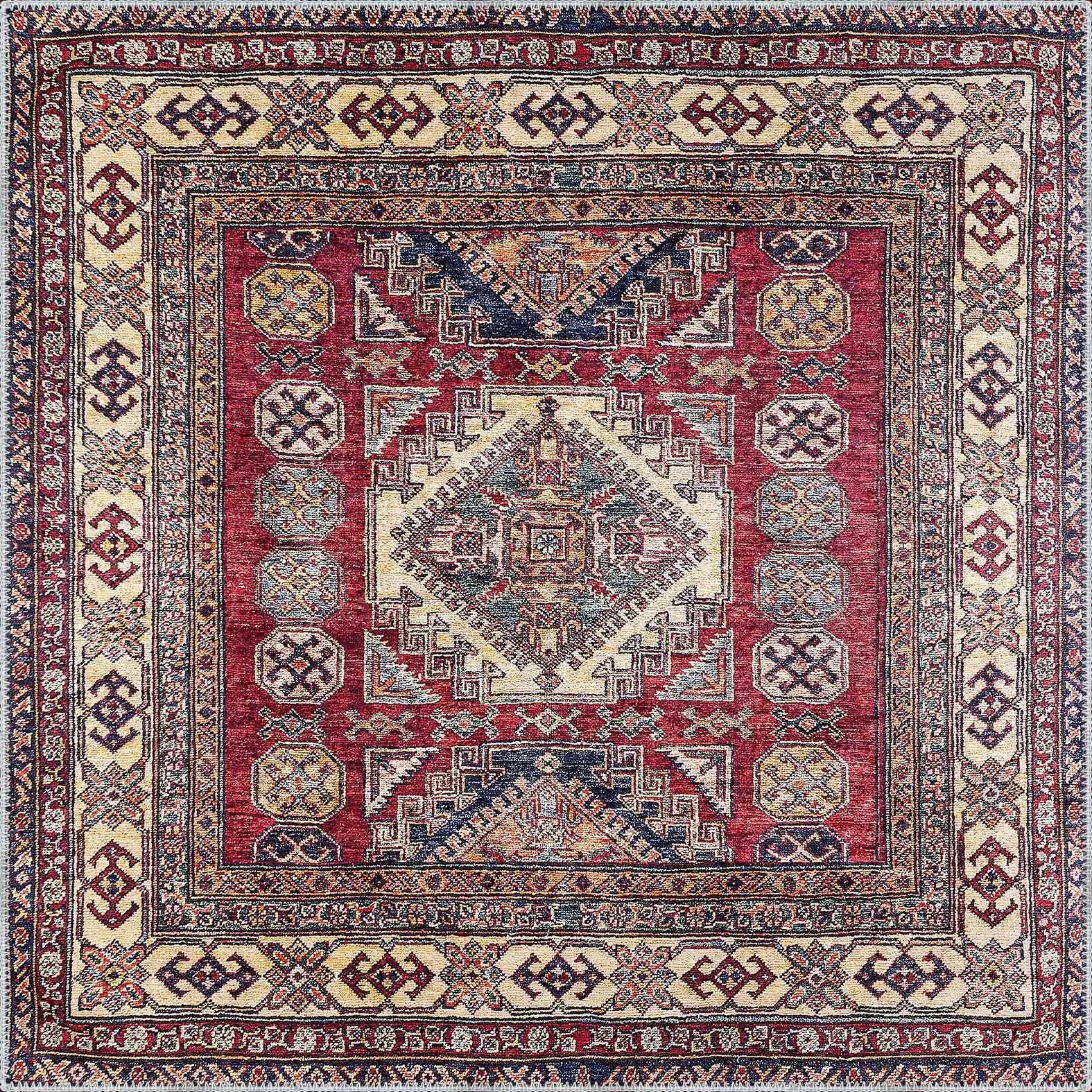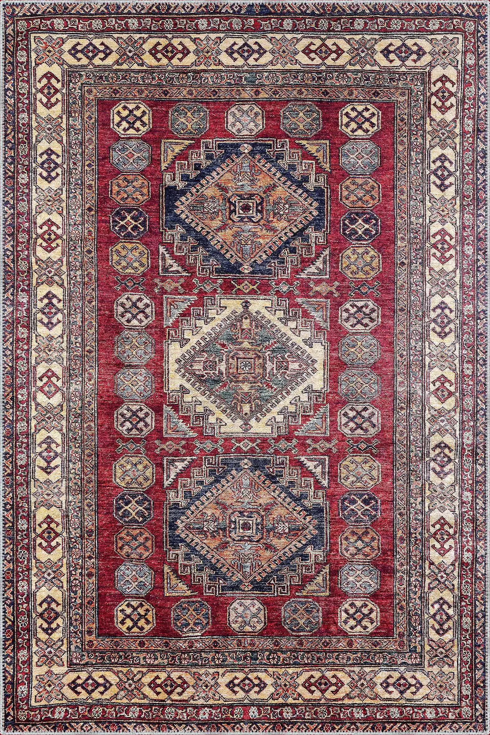 Hitra Klasik Göbekli Multi Polyester ve Pamuklu Kaydırmaz Taban Yıkanabilir Dijital Baskı Halısı