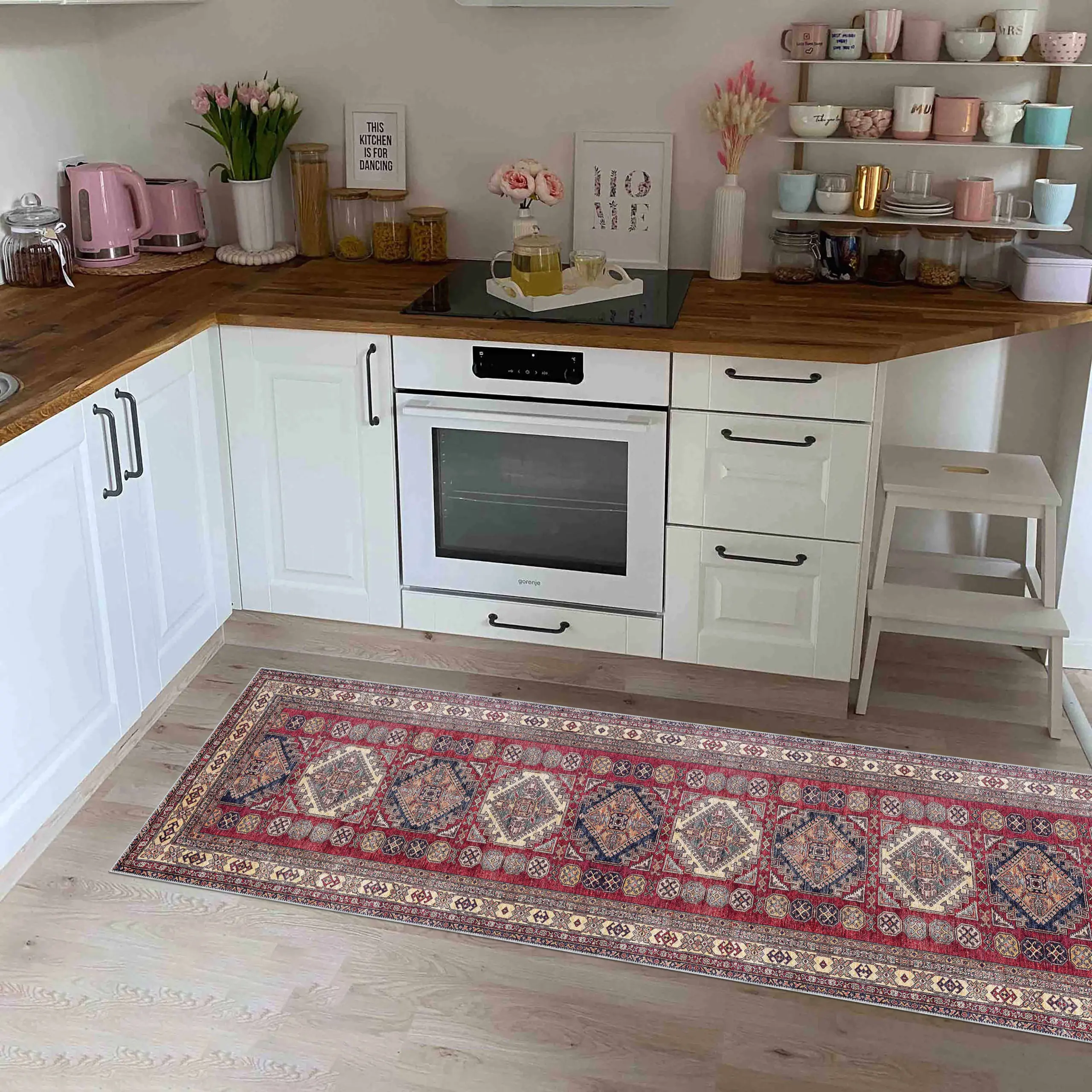 Alt yüzeyinde kullanılan özel PVC kaymaz taban, halının zeminle kusursuz bir şekilde tutunmasını sağlar.