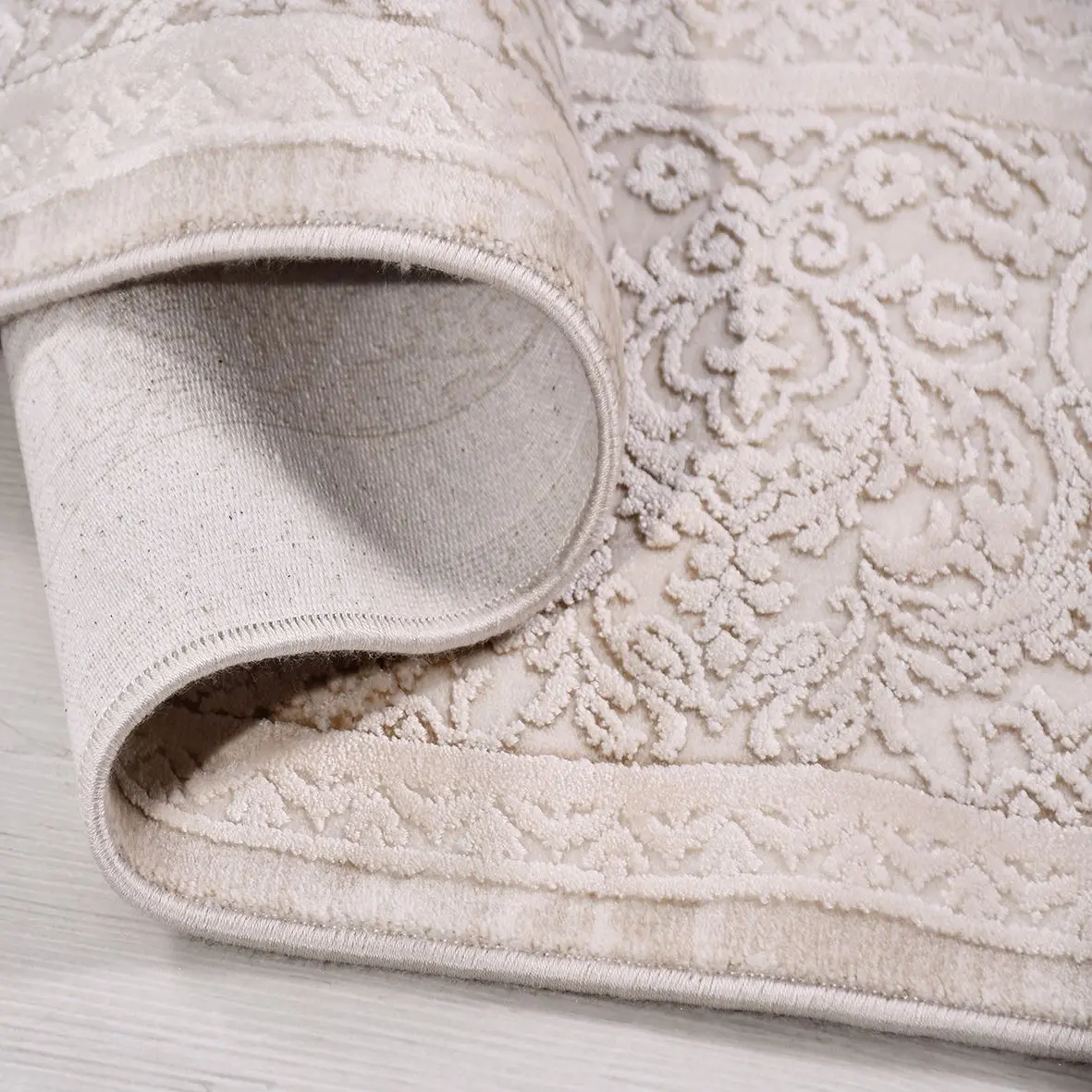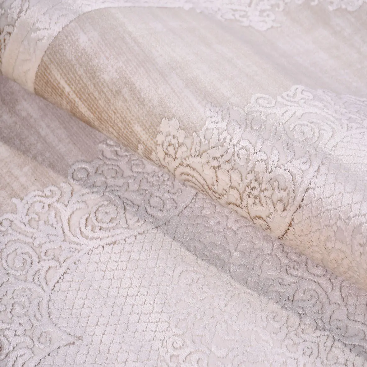 Husum Klasik Göbekli Bej Viskon ve Akrilik Makine Halısı