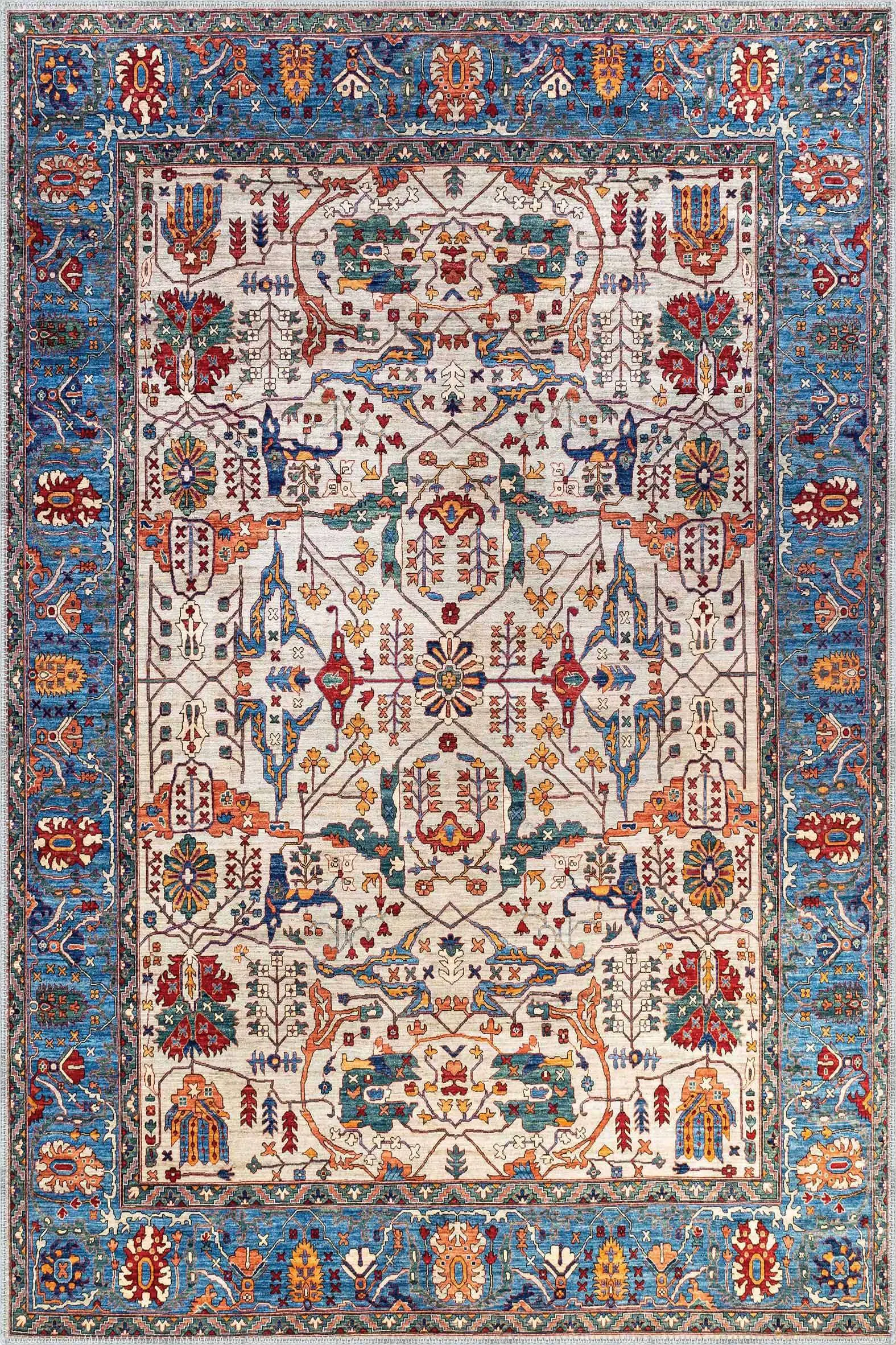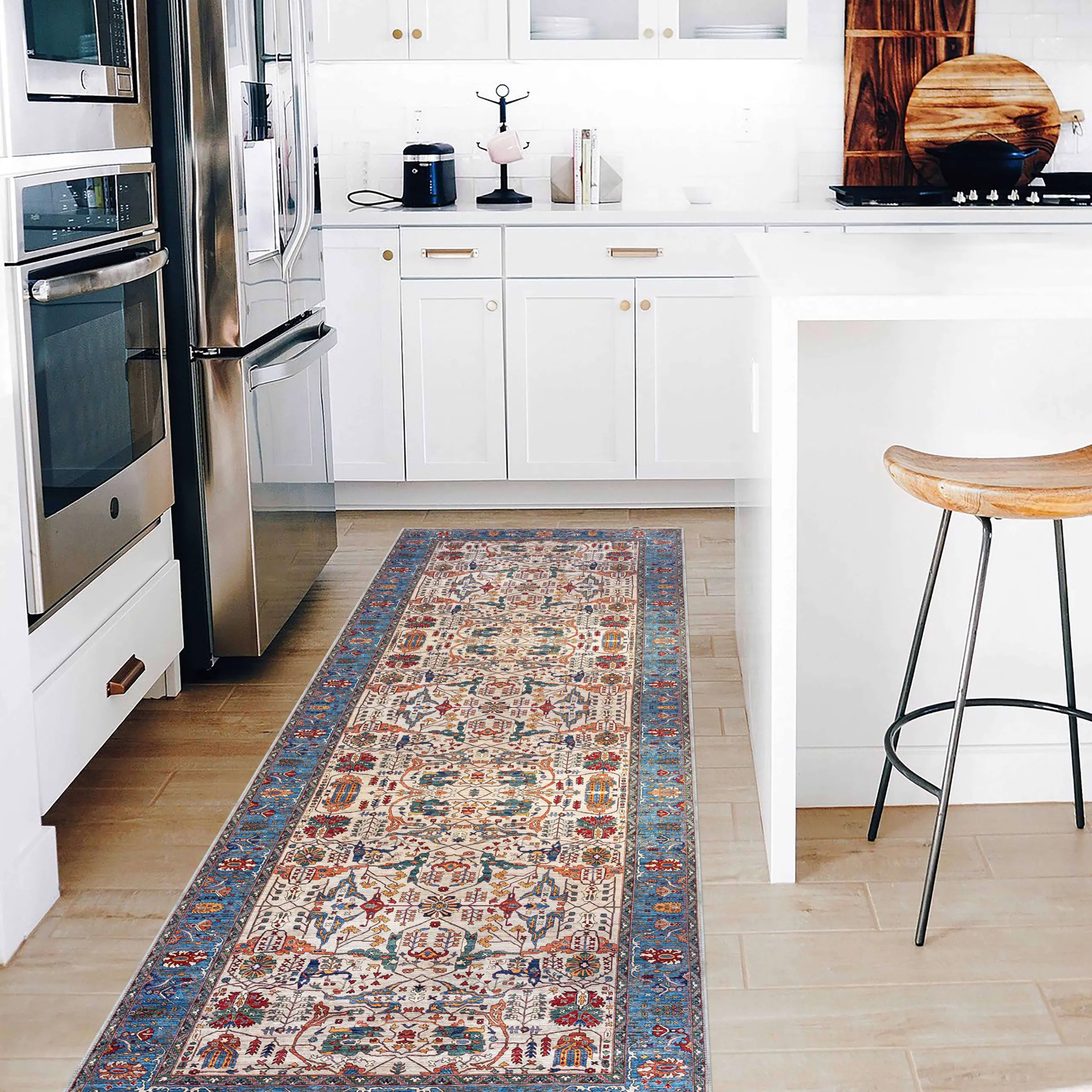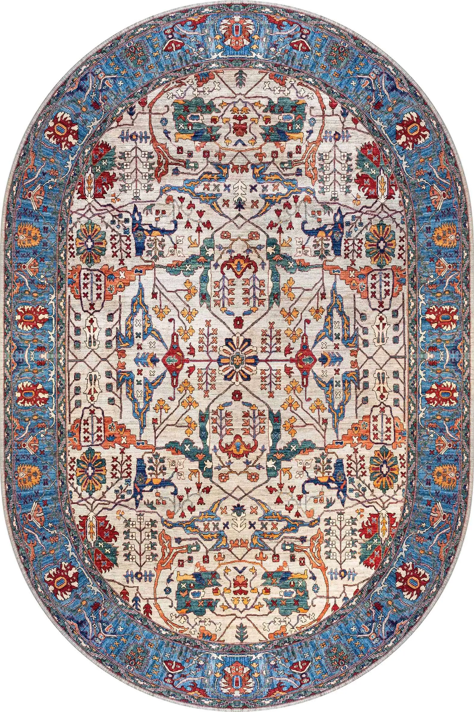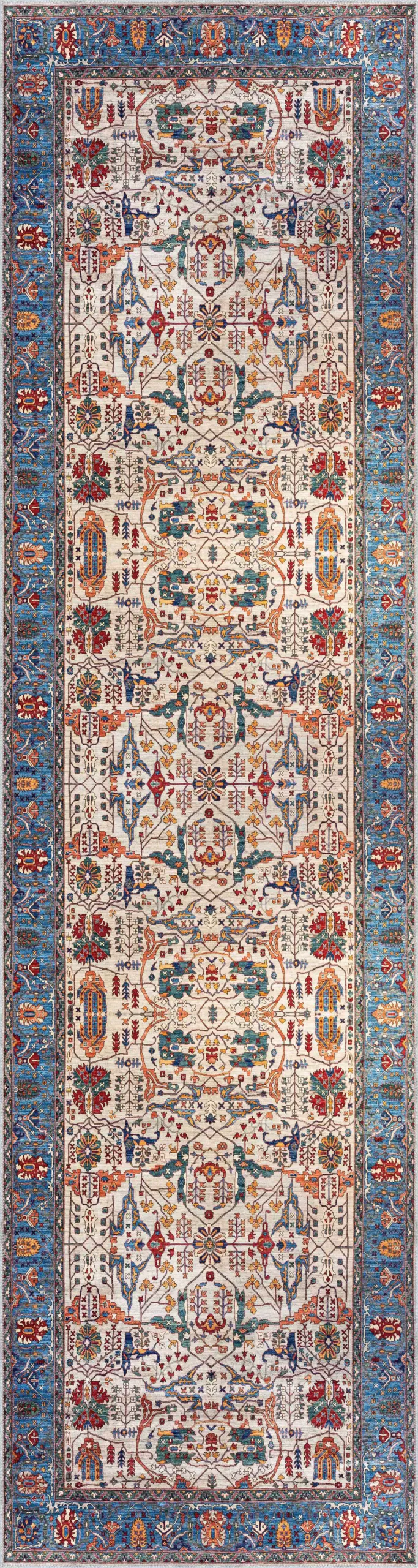 Jimo Çerçeveli Mavi Polyester ve Pamuklu Kaydırmaz Tabanlı Yıkanabilir Dijital Baskı Halısı