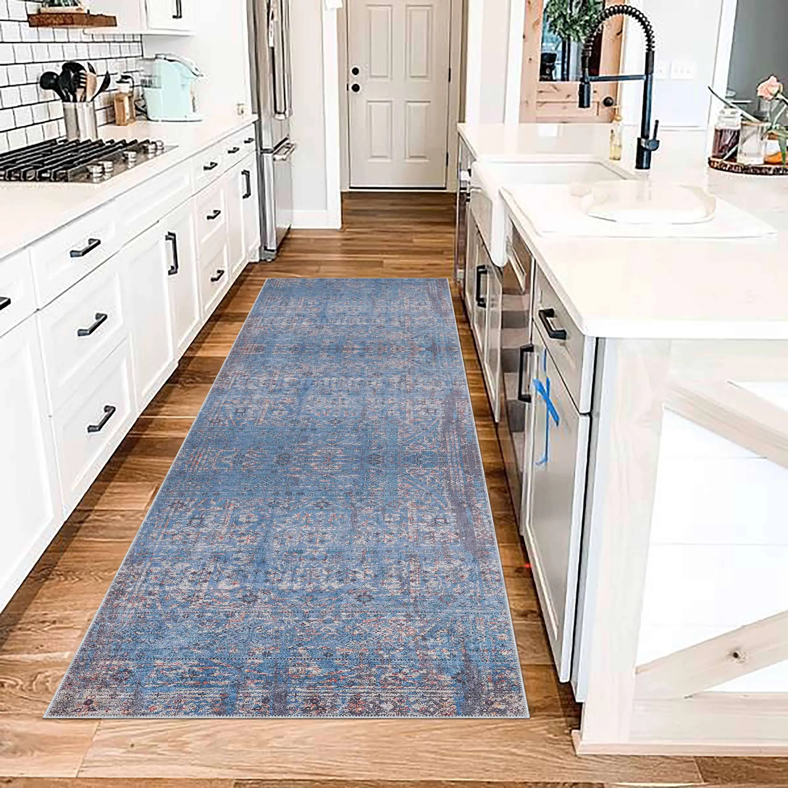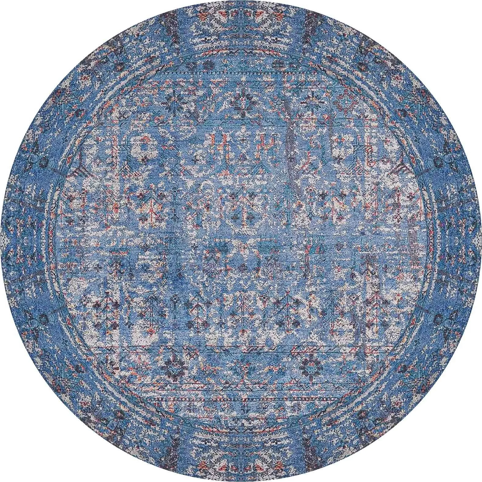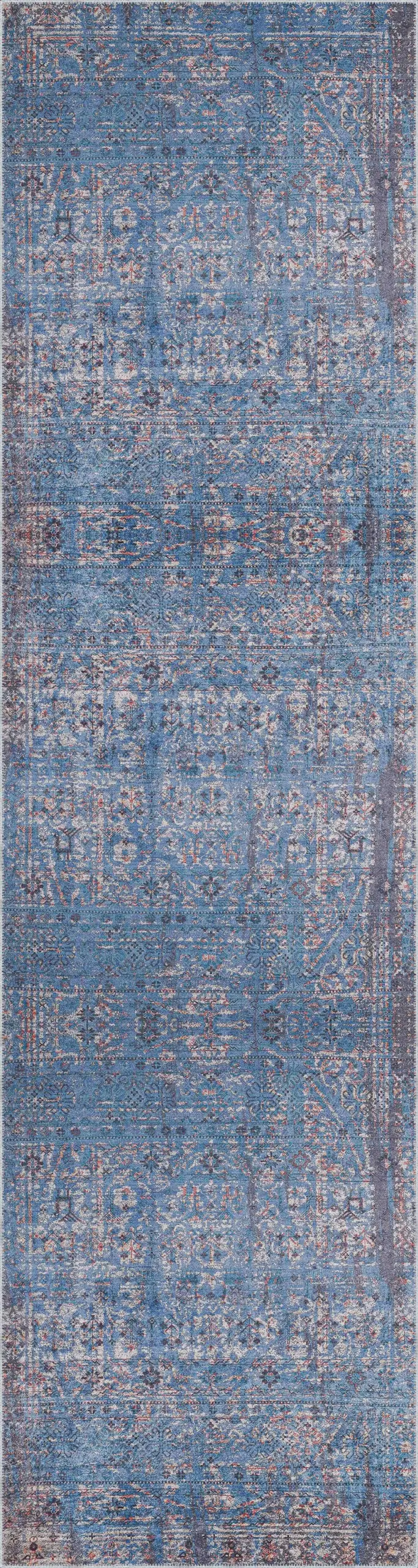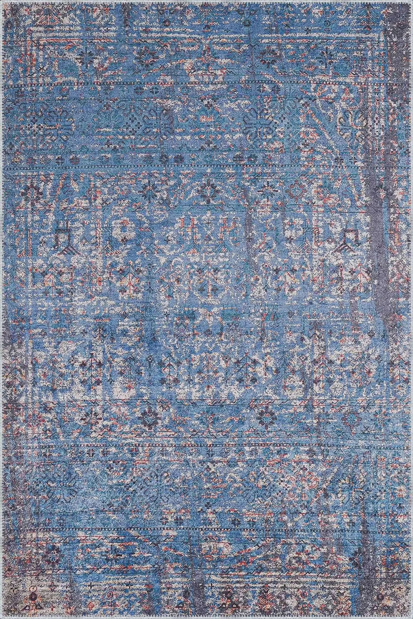 Mirador Modern Mavi Polyester ve Pamuklu Kaydırmaz Tabanlı Yıkanabilir Dijital Baskı Halısı