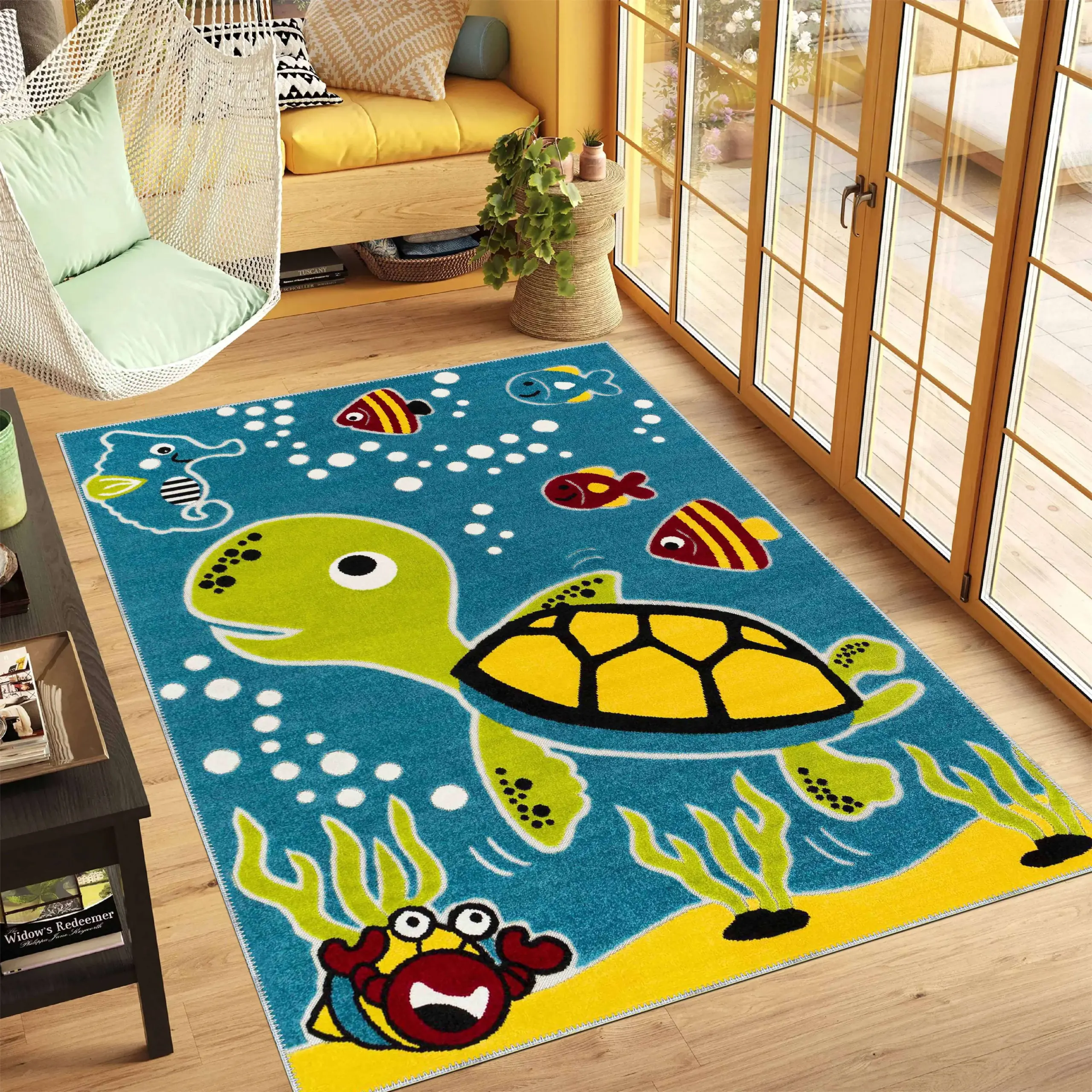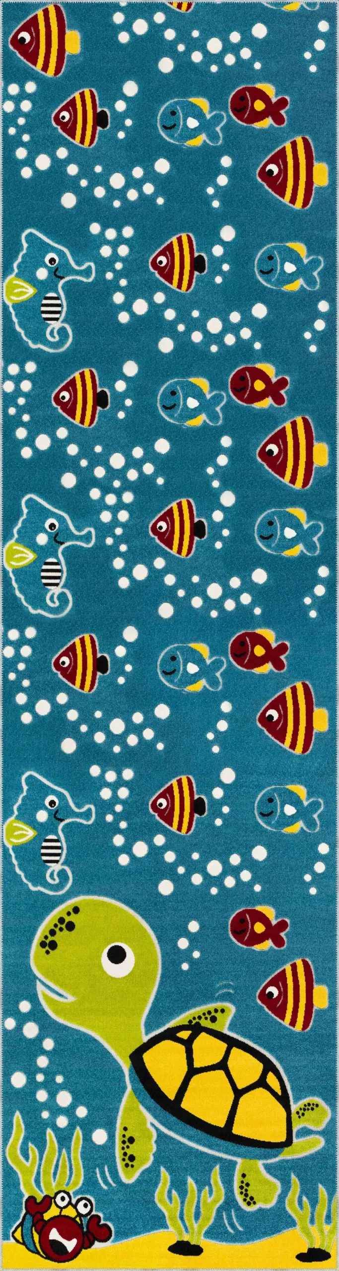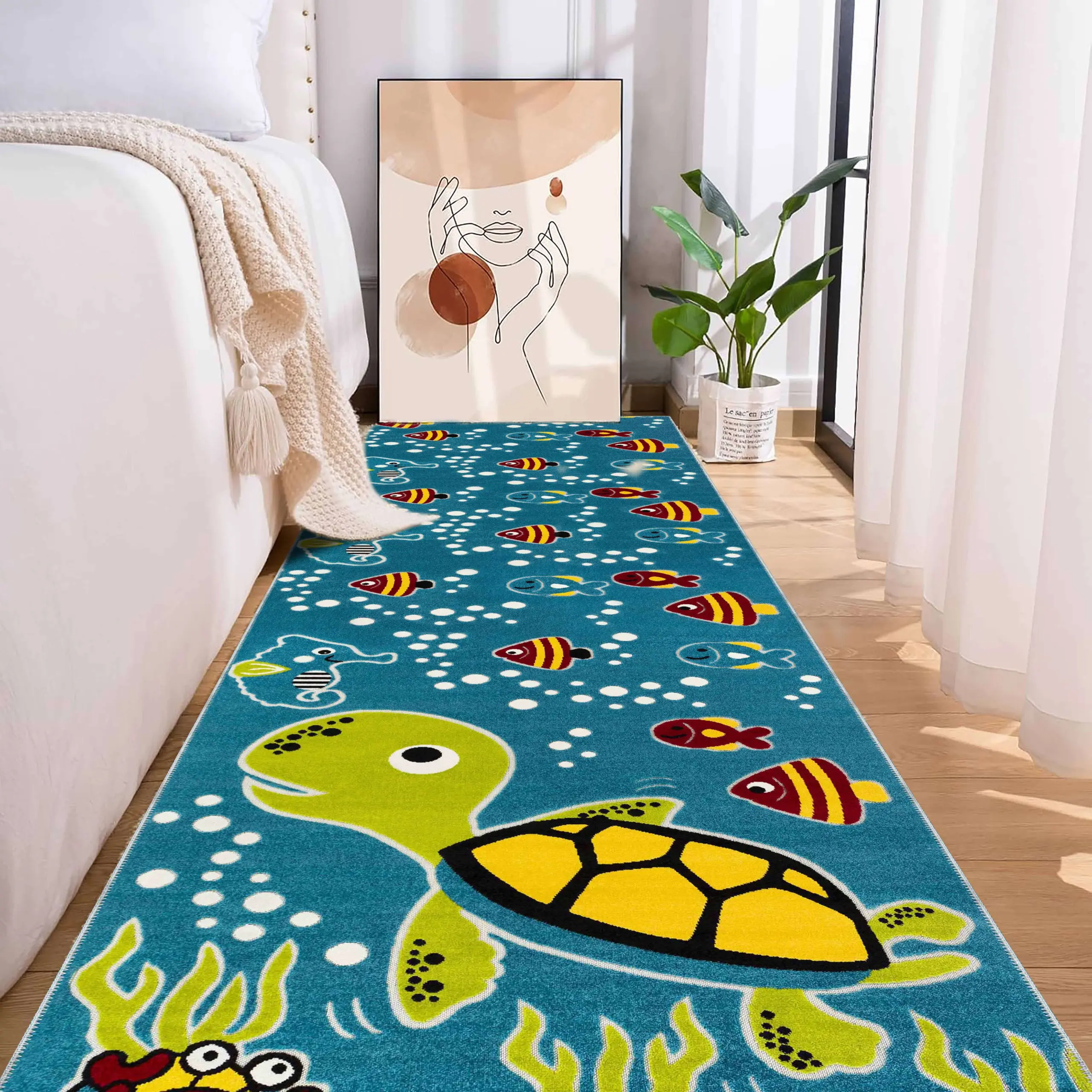Parita Su Dünyası Desenli Mavi Polyester ve Pamuklu Kaydırmaz Tabanlı Yıkanabilir Dijital Baskı Çocuk Odası Halısı