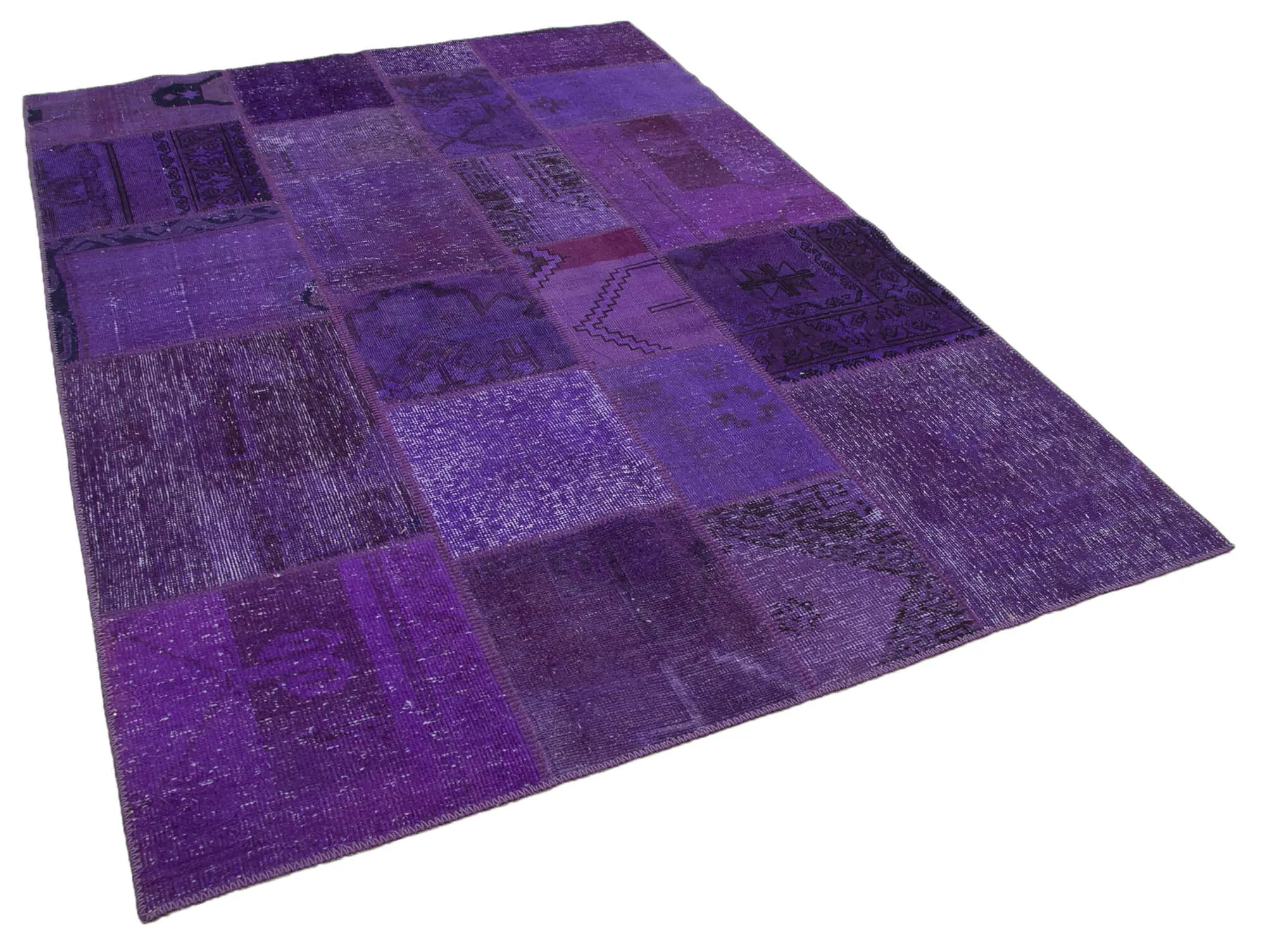 Patchwork Mor Pamuk Üzerine Yün El Dokuma Kilim-171×239