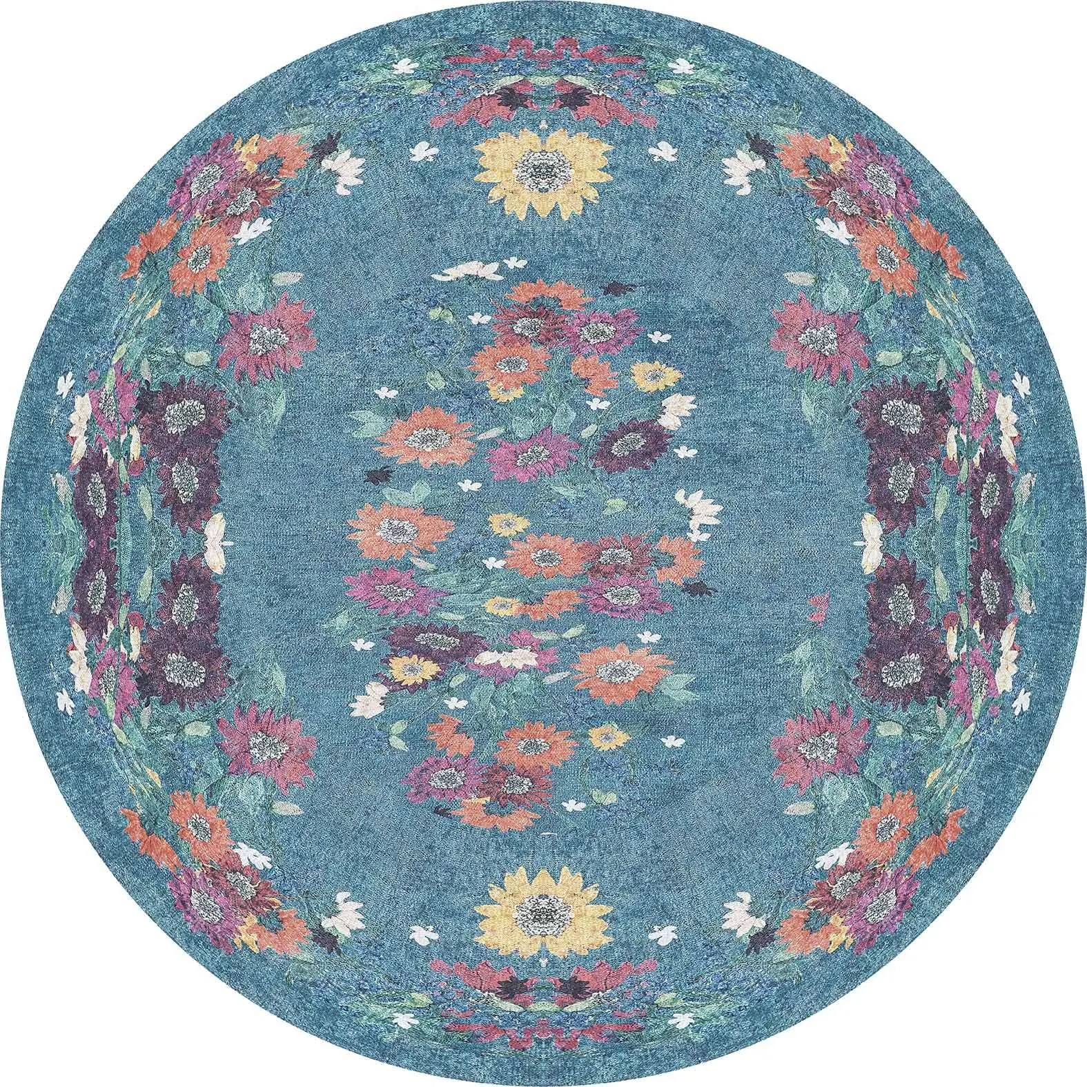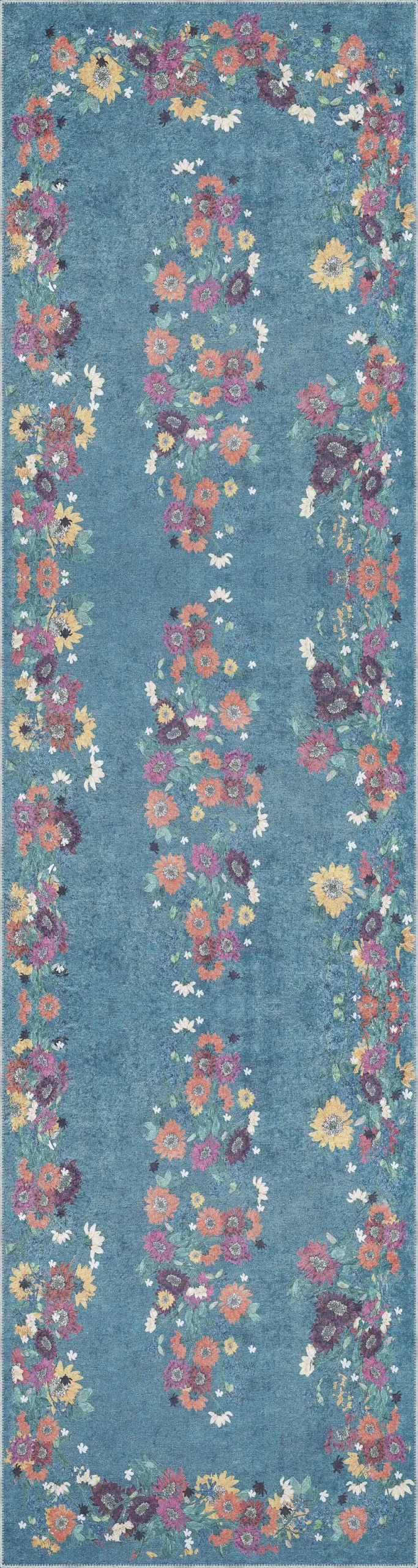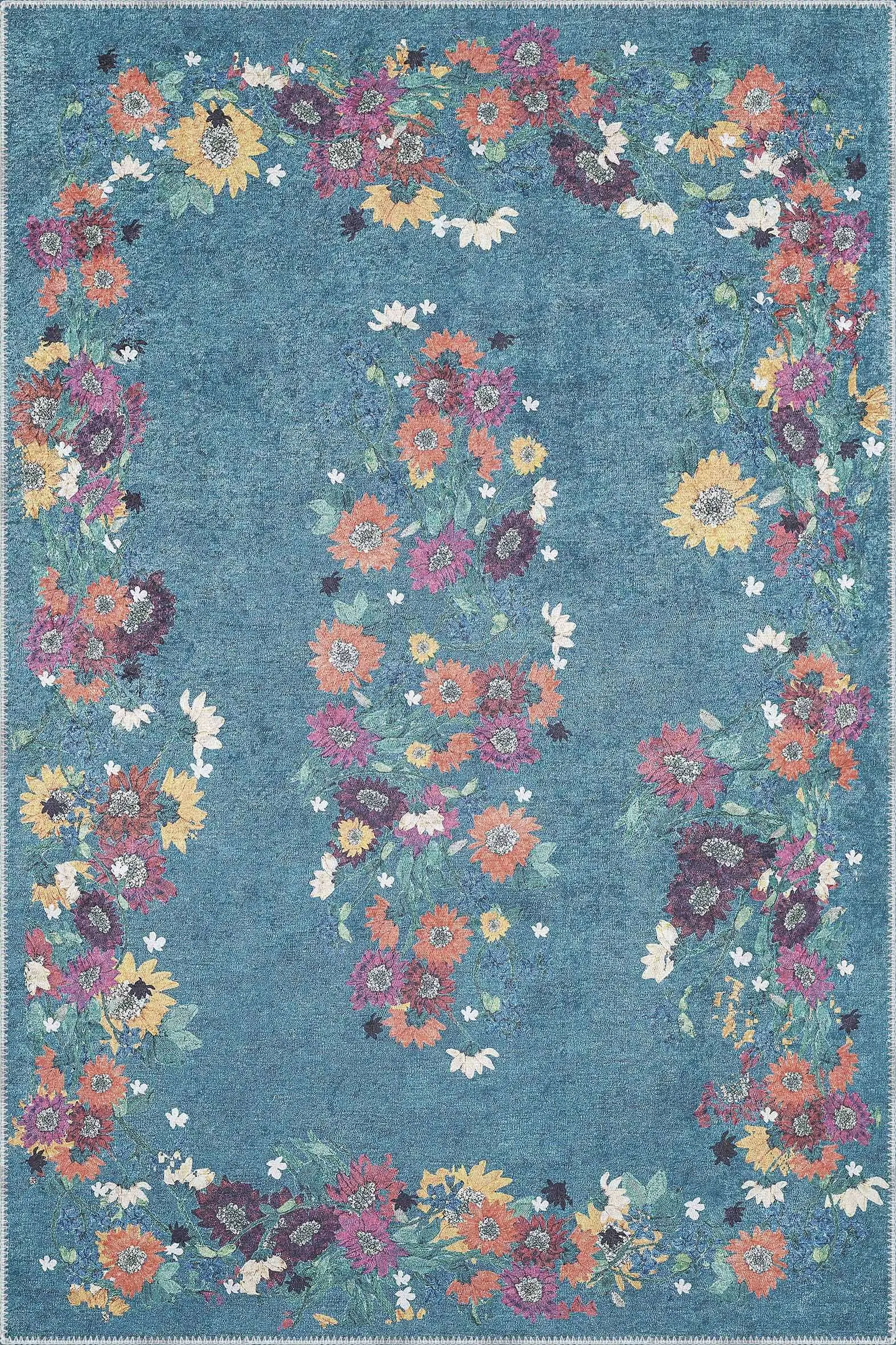 Pesse Modern Mavi Polyester ve Pamuklu Kaydırmaz Tabanlı Yıkanabilir Dijital Baskı Halısı