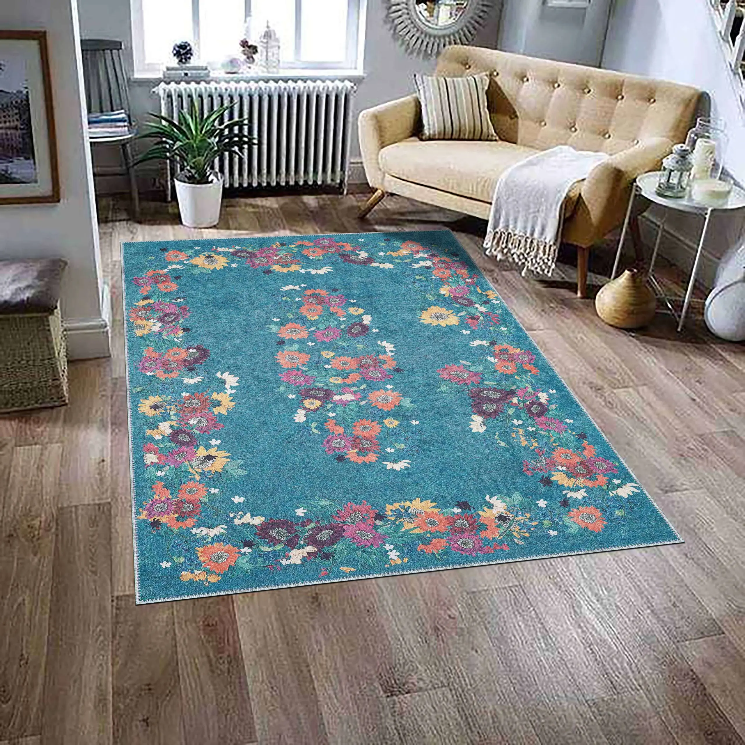 Alt yüzeyinde kullanılan özel PVC kaymaz taban, halının zeminle kusursuz bir şekilde tutunmasını sağlar.
