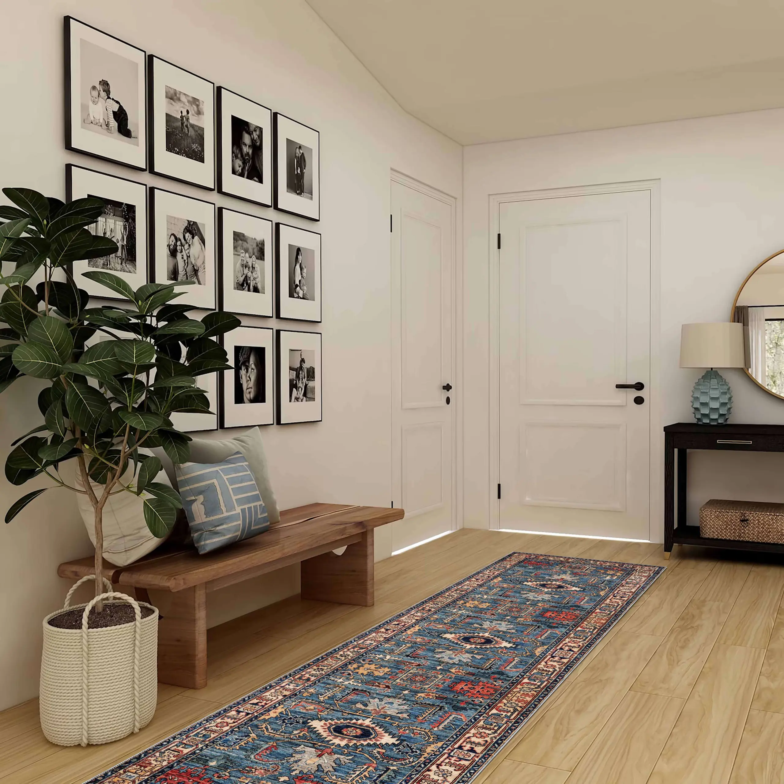 Pursad Klasik Göbekli Multi Polyester ve Pamuklu Kaydırmaz Tabanlı Yıkanabilir Dijital Baskı Halısı