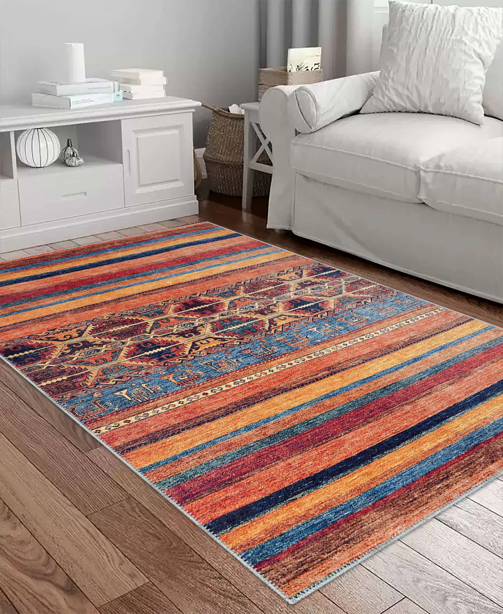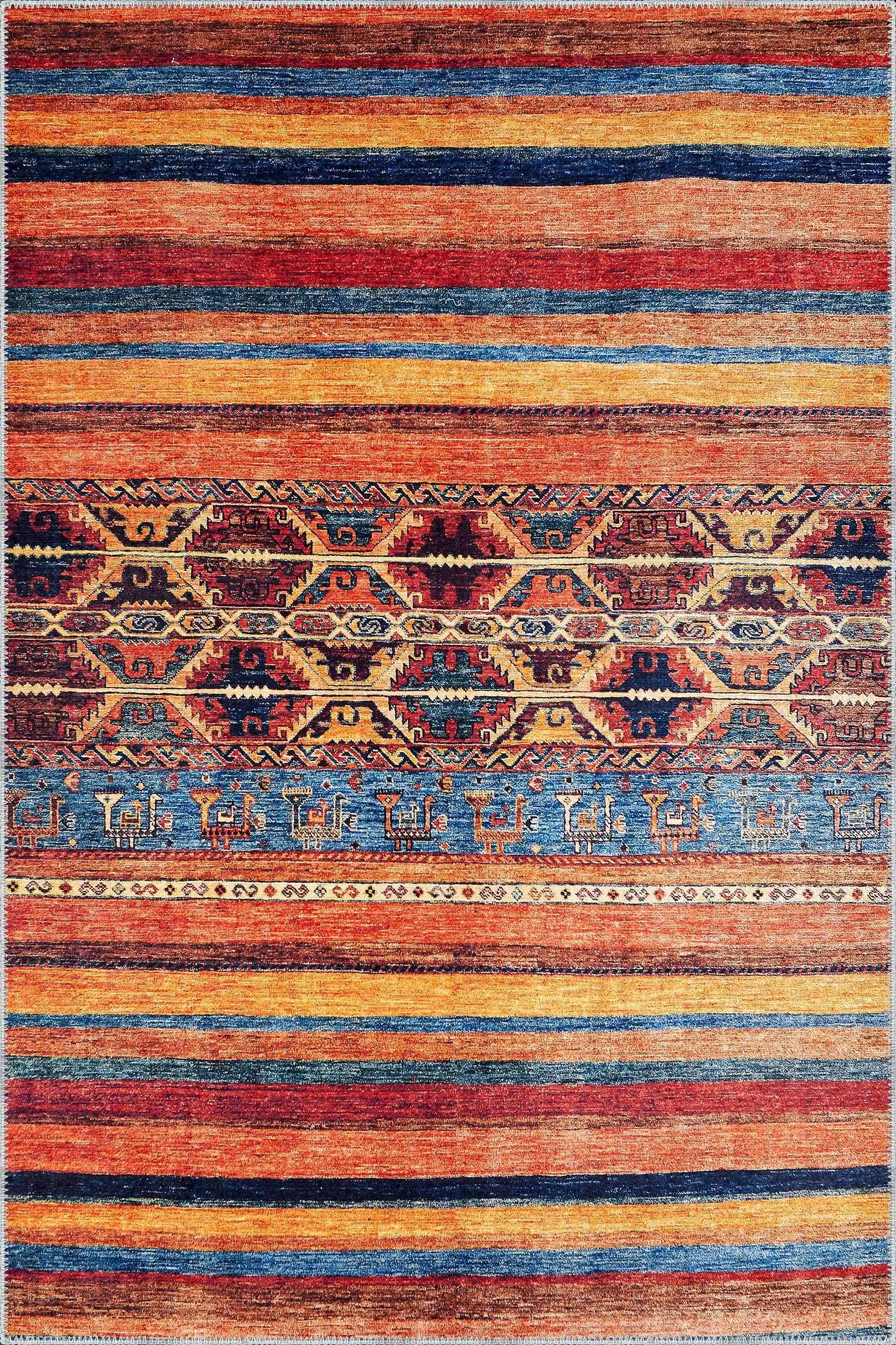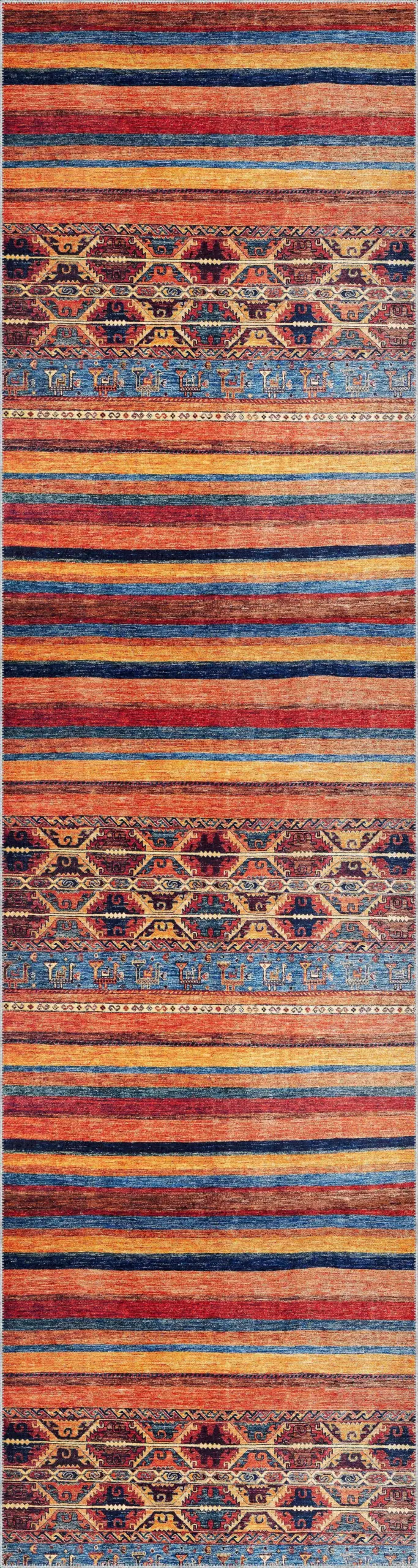 Salen Çizgili Multi Polyester ve Pamuklu Kaydırmaz Taban Yıkanabilir Dijital Baskı Halısı