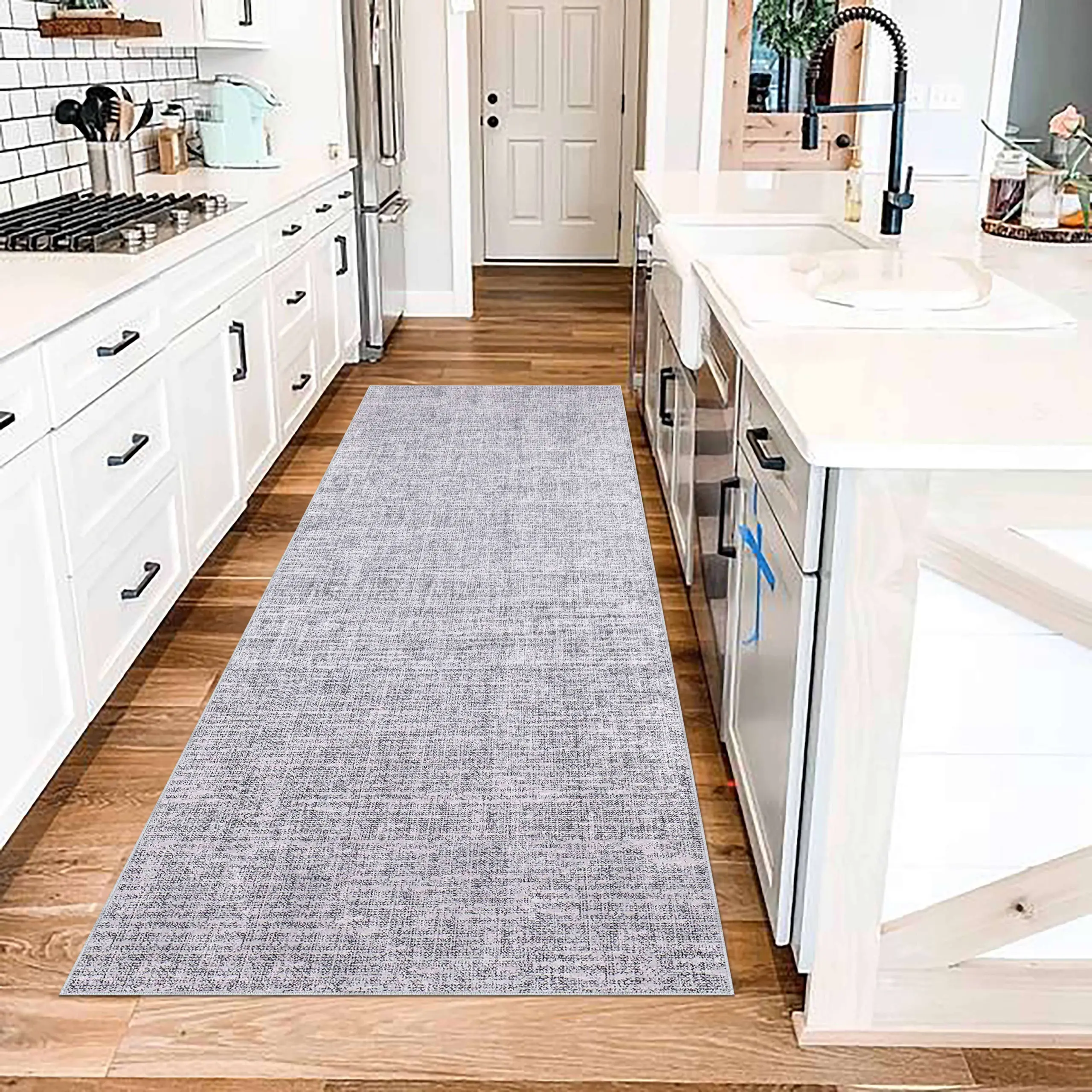 Satna Modern Gri Polyester ve Pamuklu Kaydırmaz Tabanlı Yıkanabilir Dijital Baskı Halısı