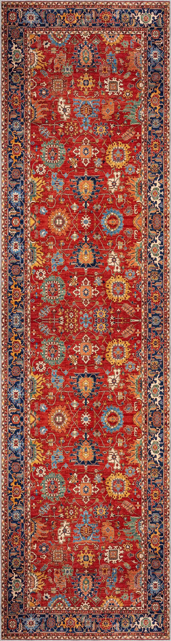Sawan Çerçeveli Kırmızı Polyester ve Pamuklu Kaydırmaz Tabanlı Yıkanabilir Dijital Baskı Halısı