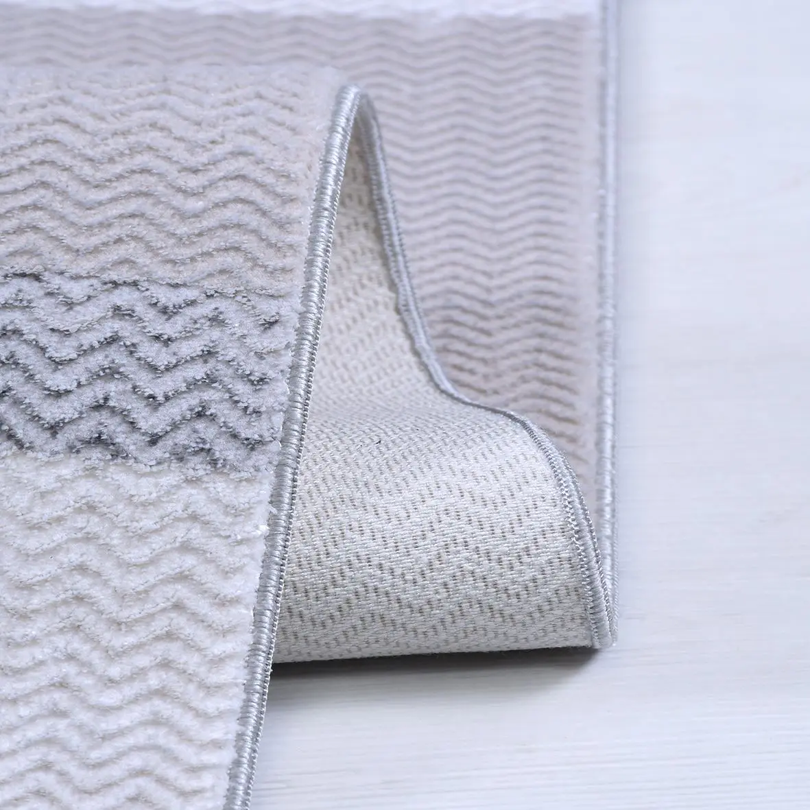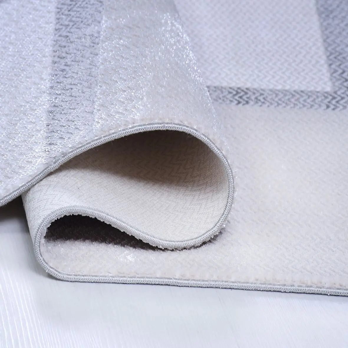 Romalt Modern Beyaz Gri Polyester Kaydırmaz Tabanlı Makine Halısı