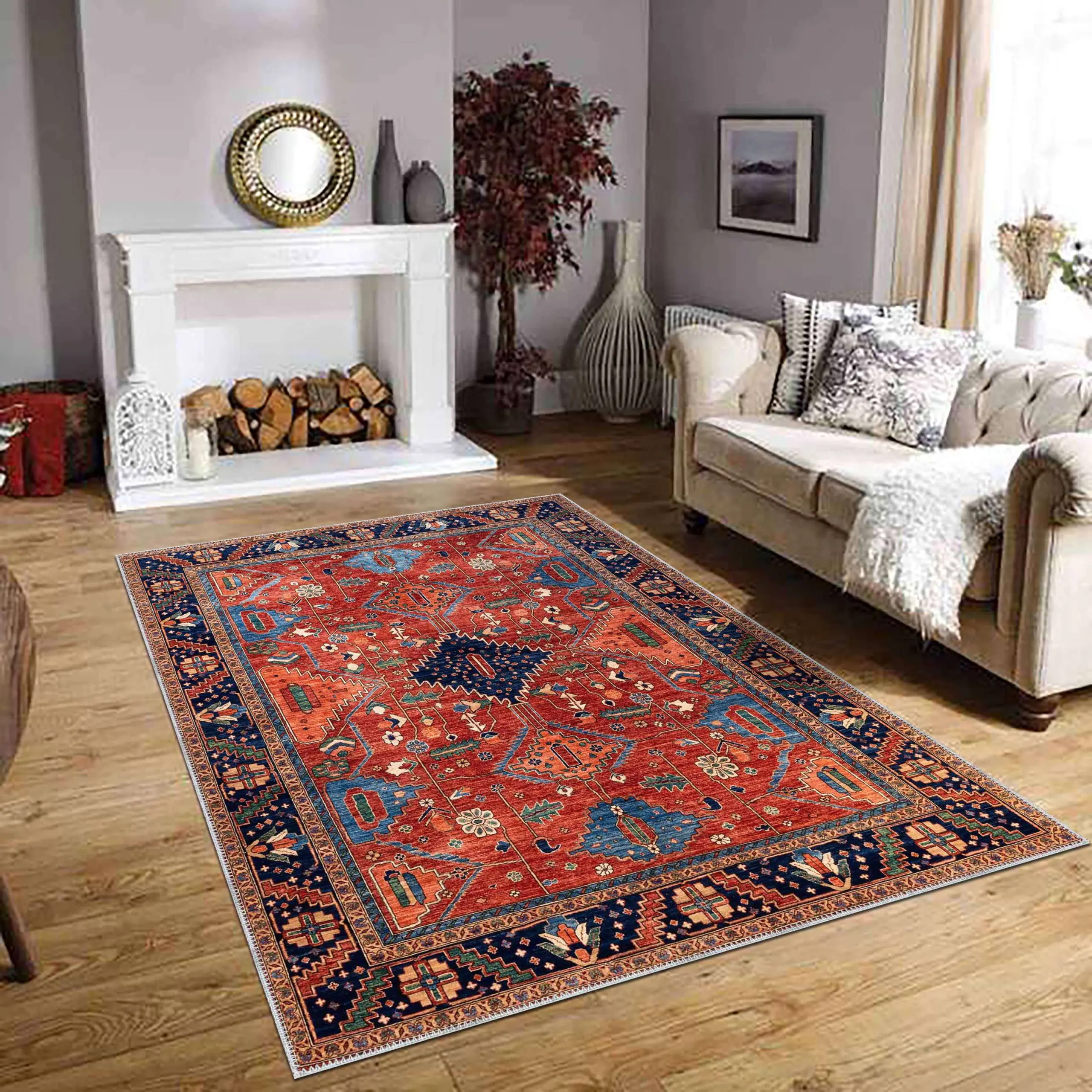 Alt yüzeyinde kullanılan özel PVC kaymaz taban, halının zeminle kusursuz bir şekilde tutunmasını sağlar.