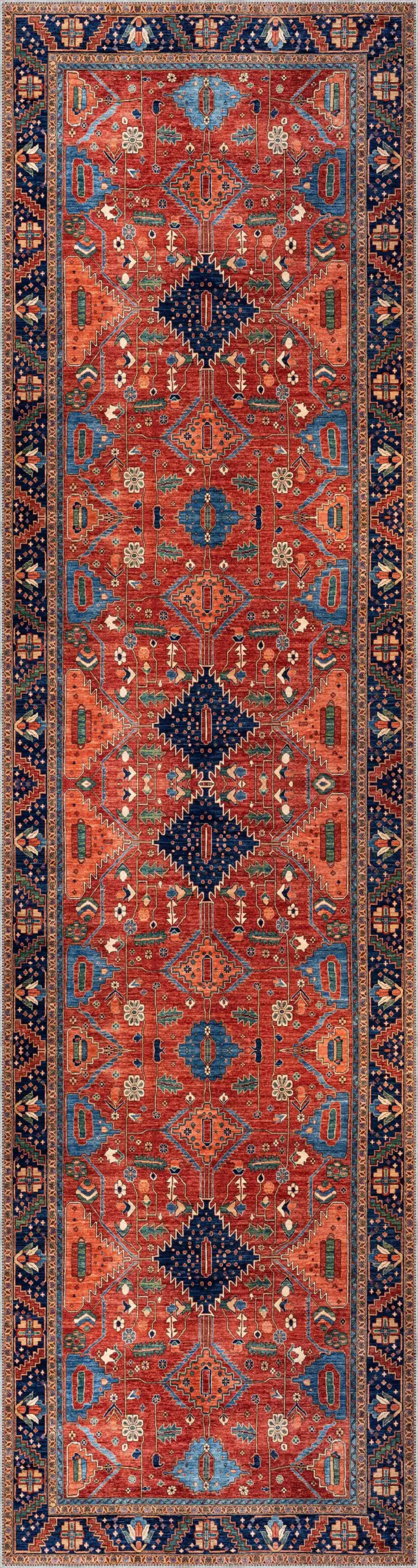 Ubon Çerçeveli Kırmızı Polyester ve Pamuklu Kaydırmaz Tabanlı Yıkanabilir Dijital Baskı Halısı