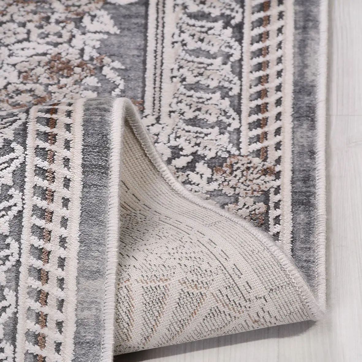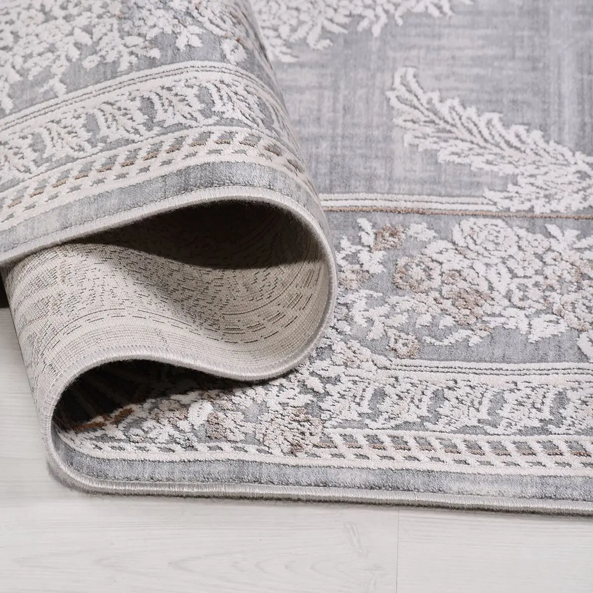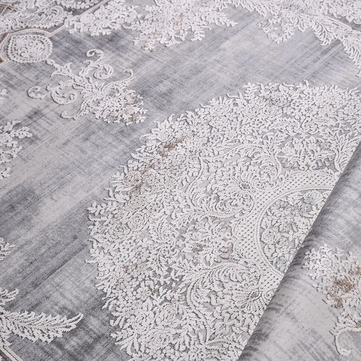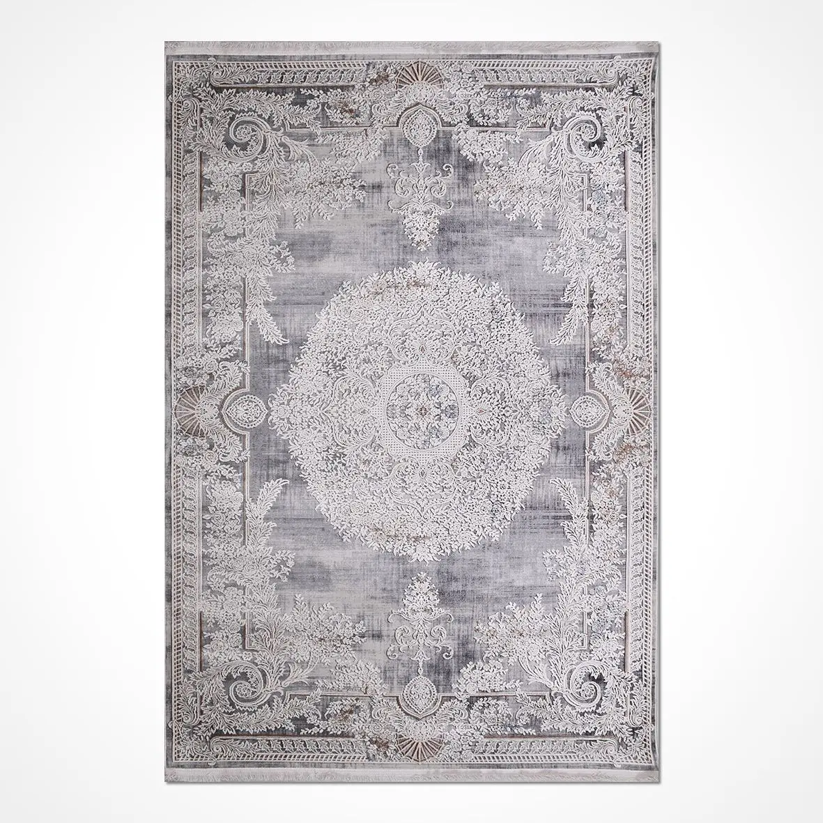 Vesdlet Klasik Gri Göbekli Viskon ve Akrilik Makine Halısı